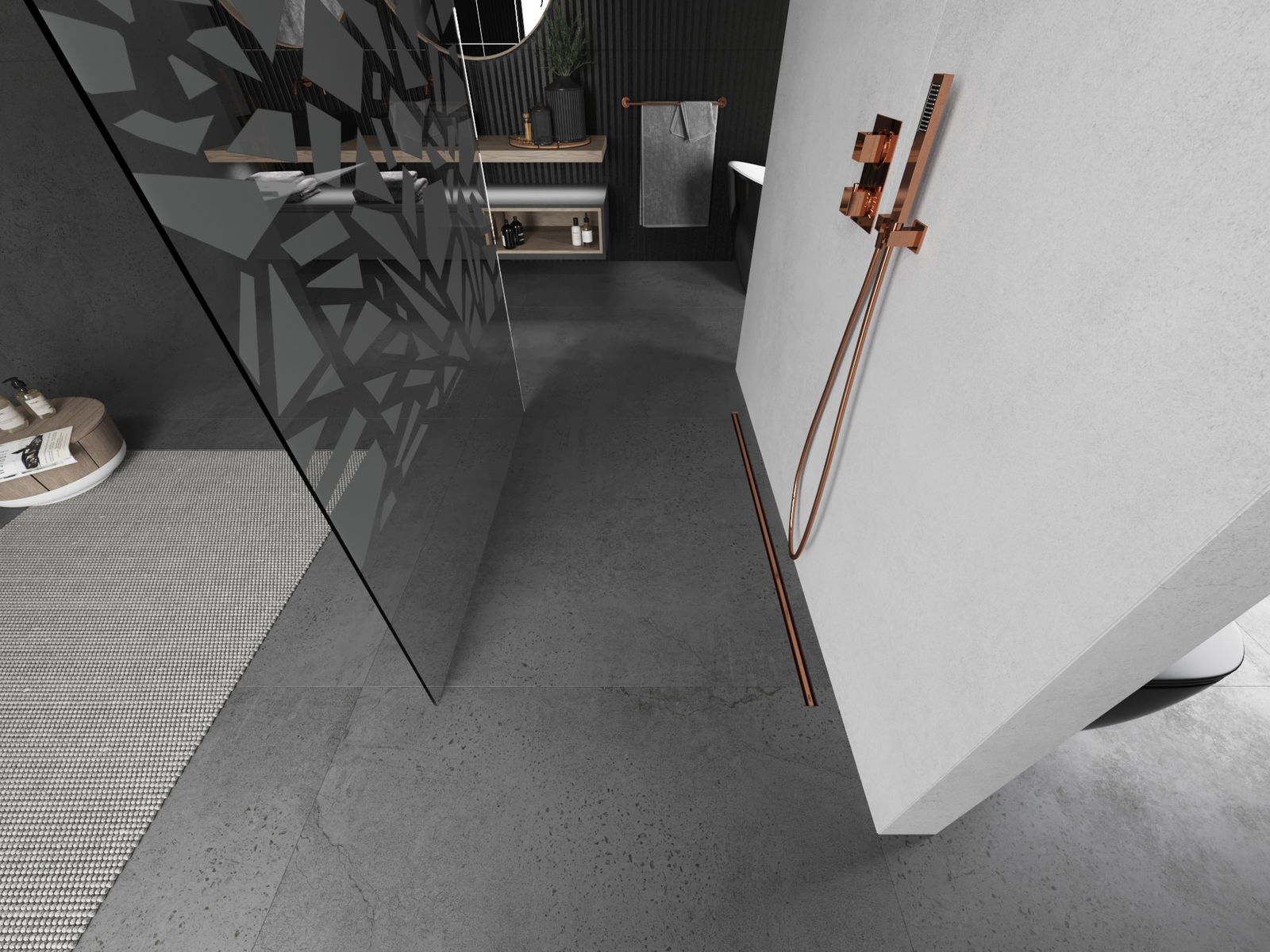 Mexen Kioto ścianka prysznicowa wolnostojąca 120 x 200 cm, biały wzór 8 mm, miedź szczotkowana - 800-120-002-65-85
