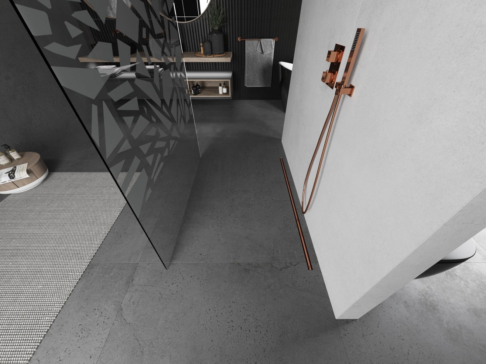 Mexen Kioto ścianka prysznicowa wolnostojąca 140 x 200 cm, biały wzór 8 mm, miedź szczotkowana - 800-140-002-65-85