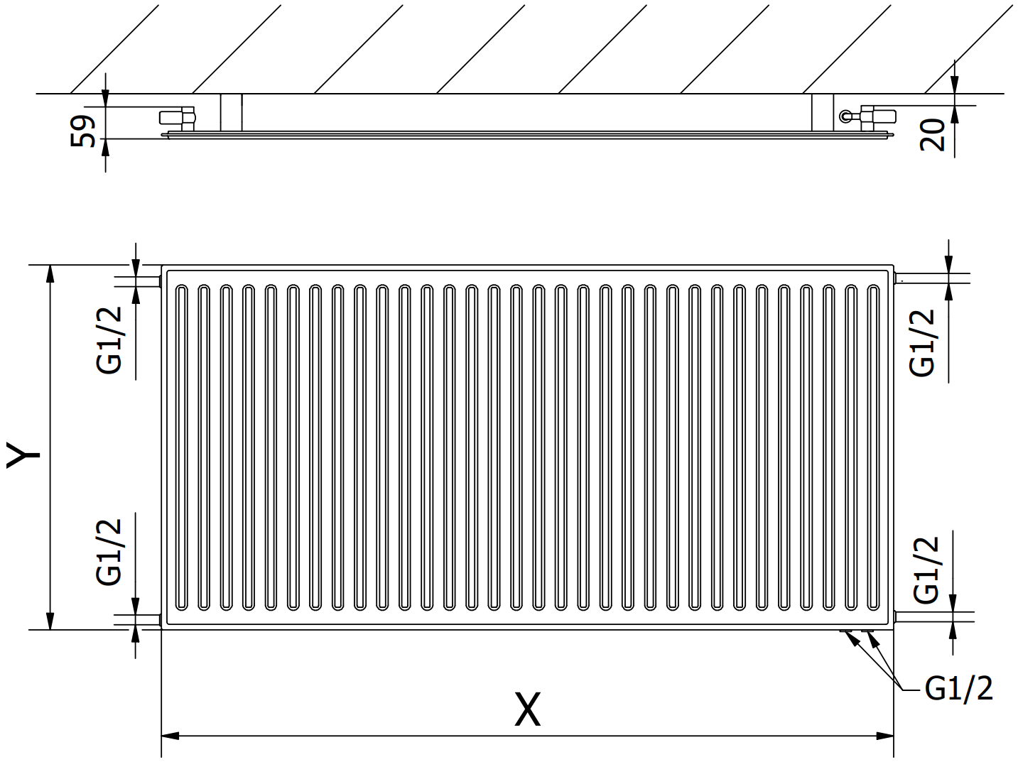 Zdjęcia przedstawiają grzejnik w rozmiarze 600 x 1200 mm.