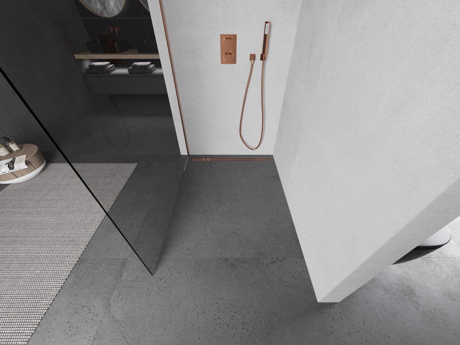 Mexen Kioto ścianka prysznicowa Walk-in 65 x 200 cm, transparent 8 mm, miedź szczotkowana - 800-065-101-65-00