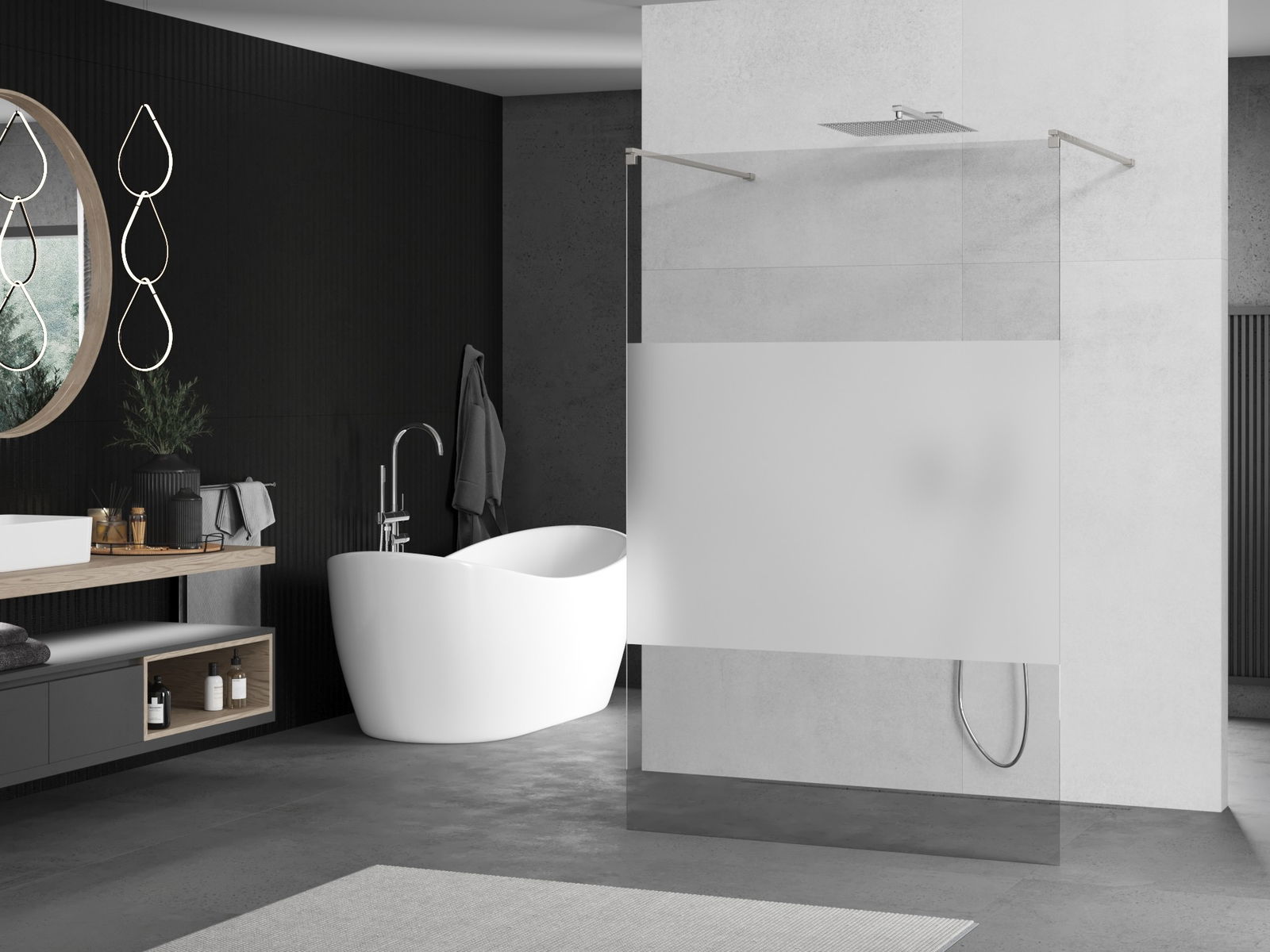 Ścianka prysznicowa walk-in to idealne rozwiązanie dla osób niepełnosprawnych. Kabina otwarta zapewnia łatwy dostęp, eliminując potrzebę pokonywania progów i drzwi. Korzystanie z prysznica jest komfortowe i przyjazne dla każdego.
