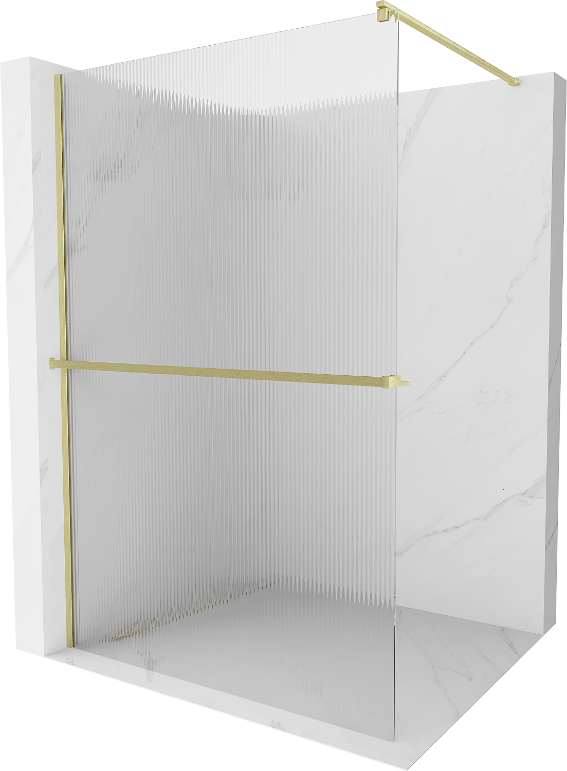 Mexen Kioto+ ścianka prysznicowa z półką Walk-in 90 x 200 cm, prążki, złota szczotkowana - 800-090-121-55-09