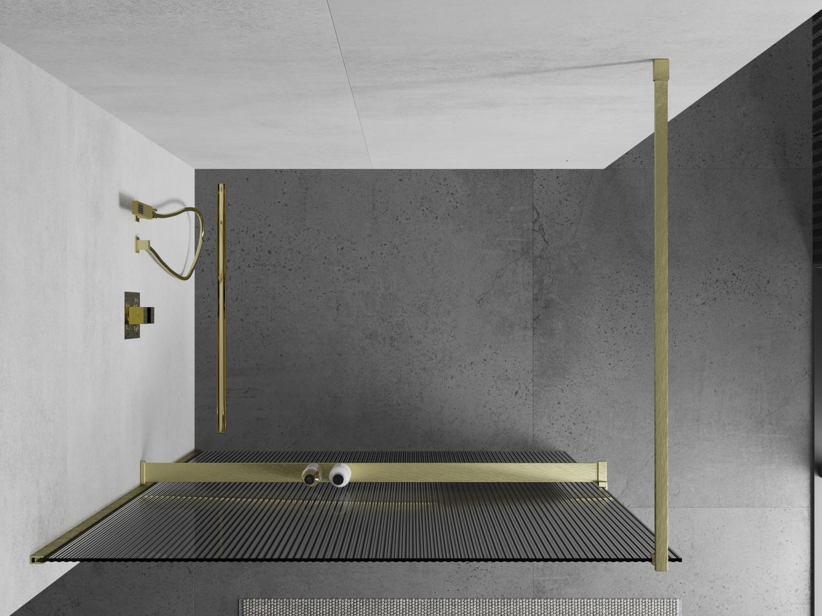 Mexen Kioto+ ścianka prysznicowa z półką Walk-in 140 x 200 cm, prążki, złota szczotkowana - 800-140-121-55-09