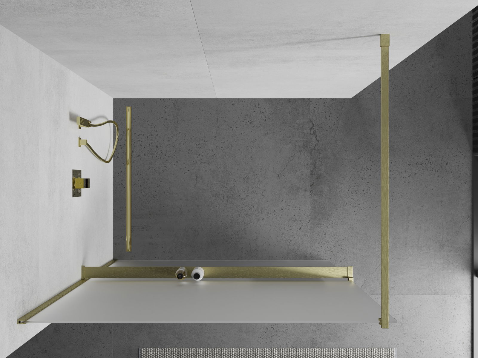 Mexen Kioto+ ścianka prysznicowa z półką Walk-in 140 x 200 cm, szron, złota szczotkowana - 800-140-121-55-30