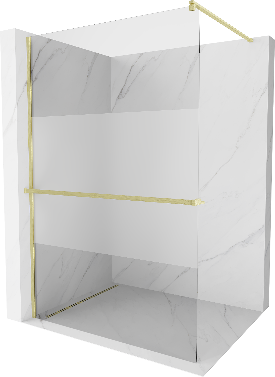 Mexen Kioto+ ścianka prysznicowa z półką Walk-in 120 x 200 cm, transparent/szron, złota szczotkowana - 800-120-121-55-35