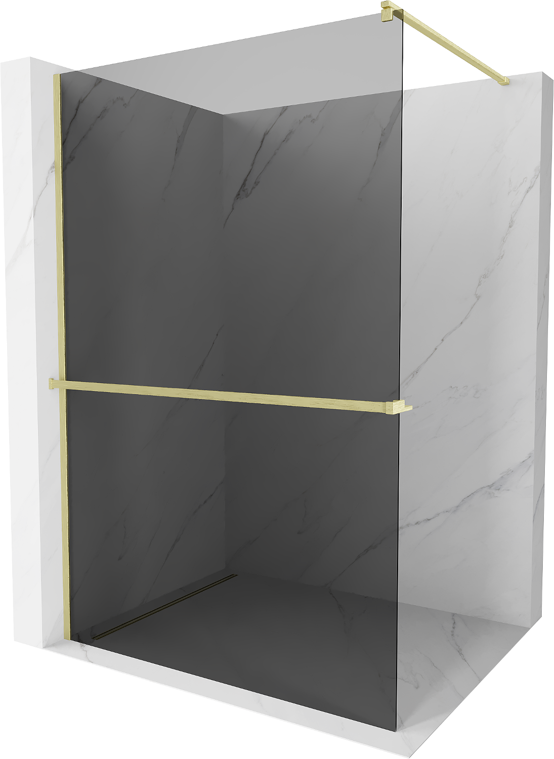 Mexen Kioto+ ścianka prysznicowa z półką Walk-in 90 x 200 cm, grafit, złota szczotkowana - 800-090-121-55-40