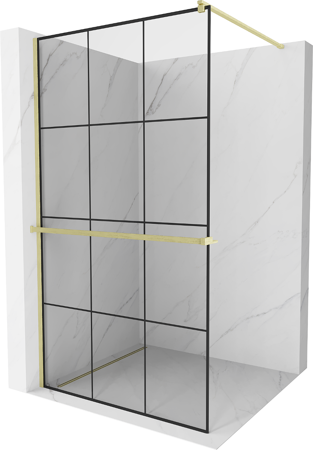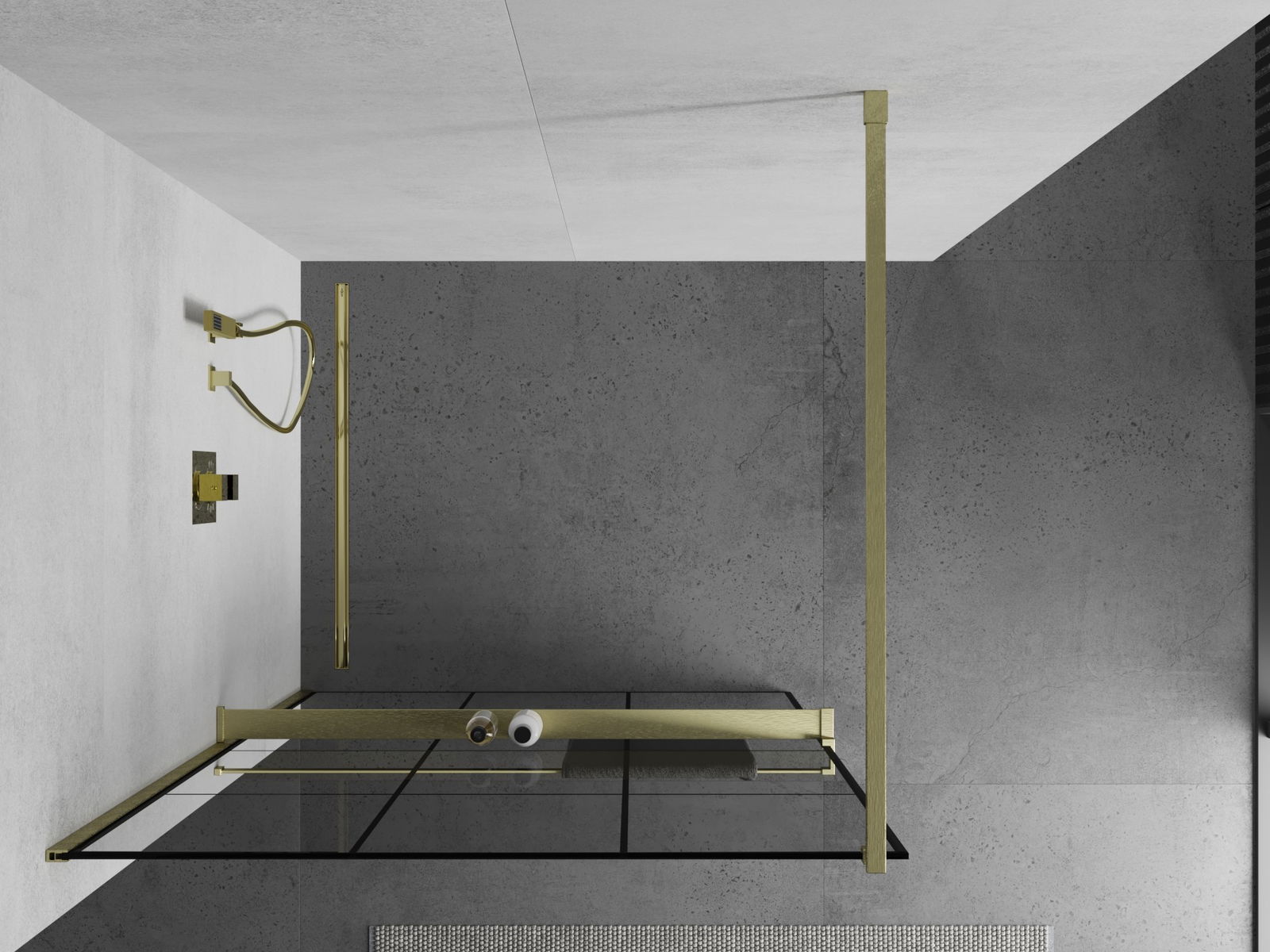 Mexen Kioto+ ścianka prysznicowa z półką Walk-in 120 x 200 cm, czarna kratka, złota szczotkowana - 800-120-121-55-77