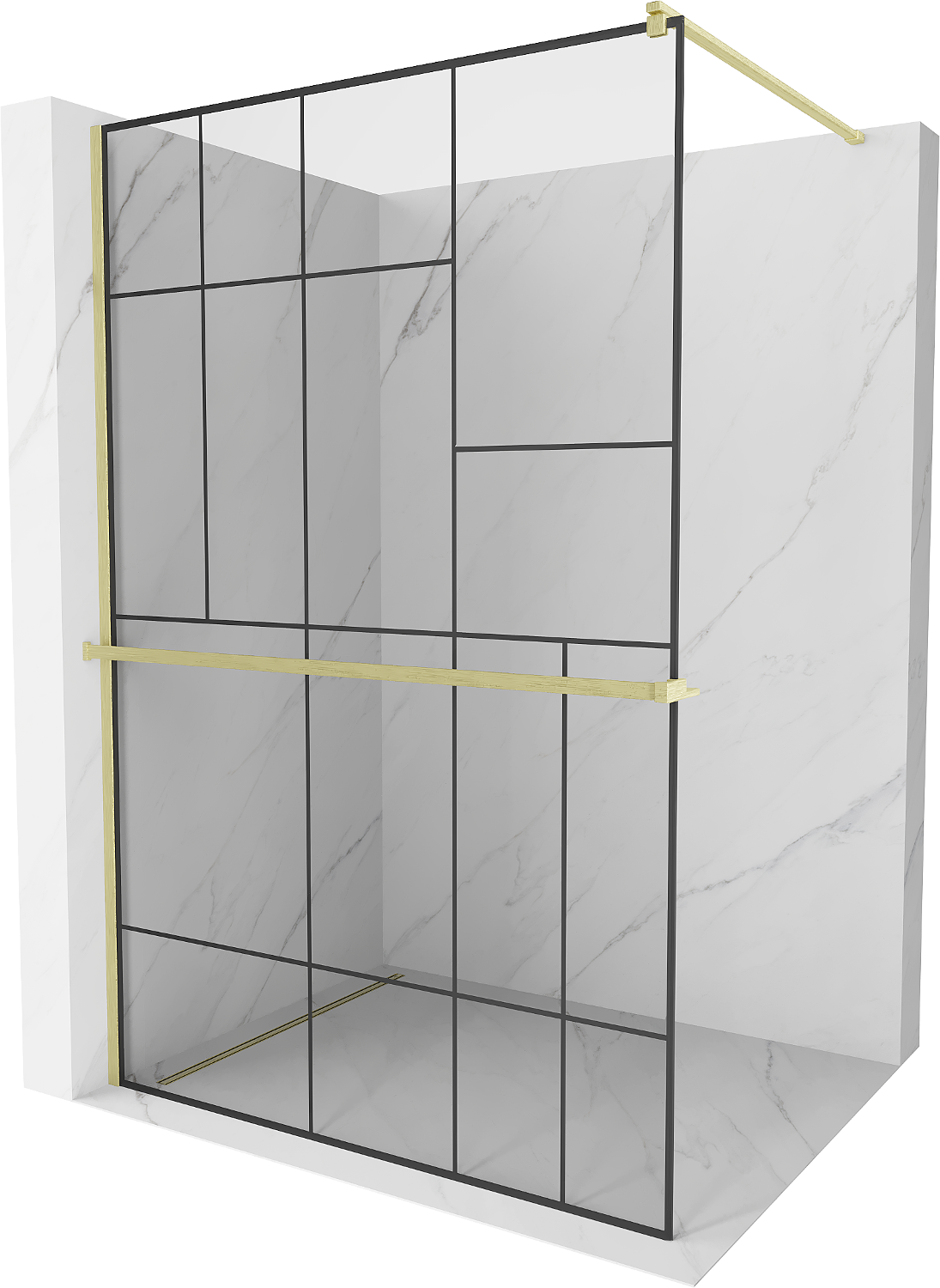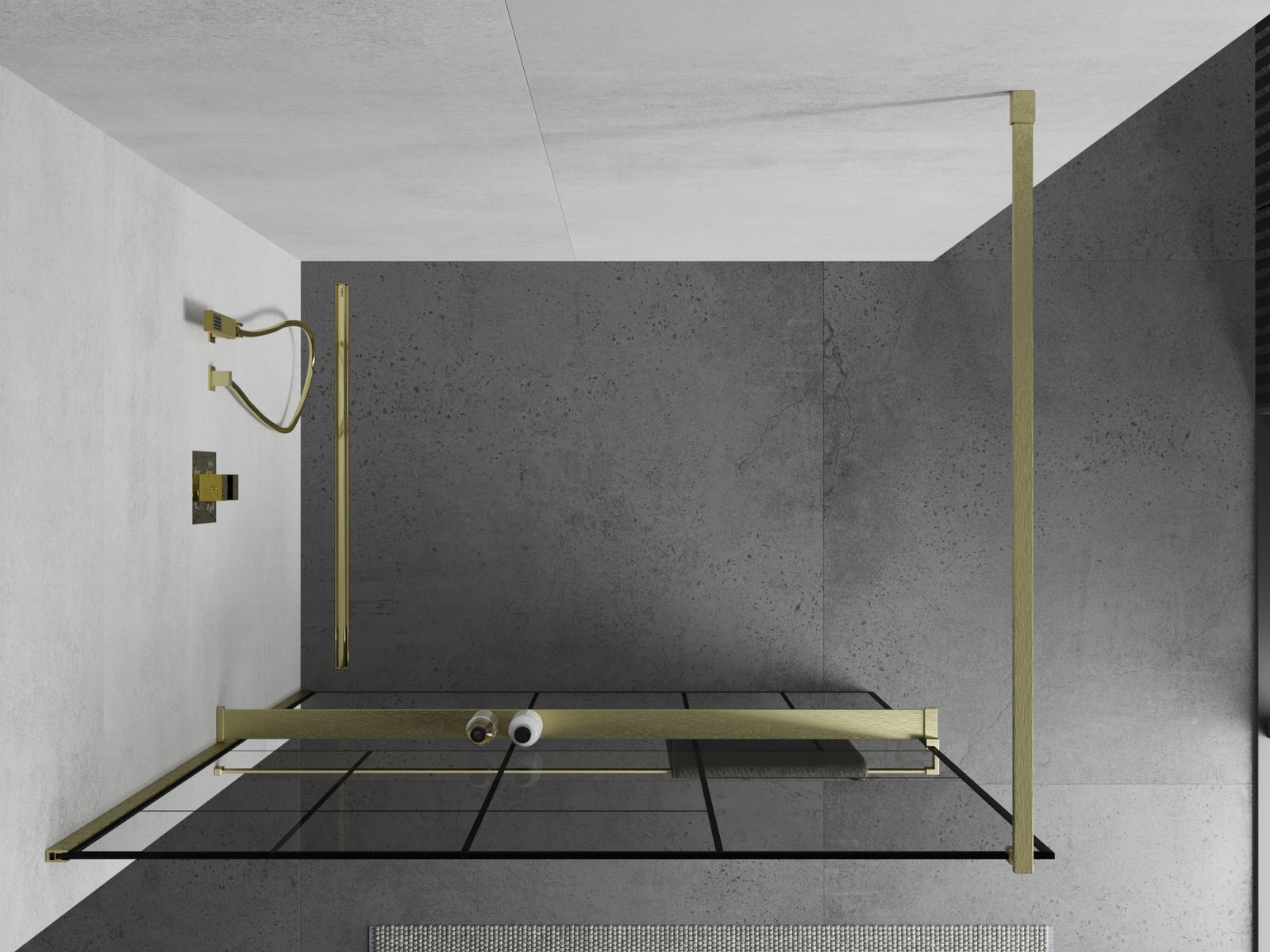 Mexen Kioto+ ścianka prysznicowa z półką Walk-in 110 x 200 cm, czarny wzór, złota szczotkowana - 800-110-121-55-78
