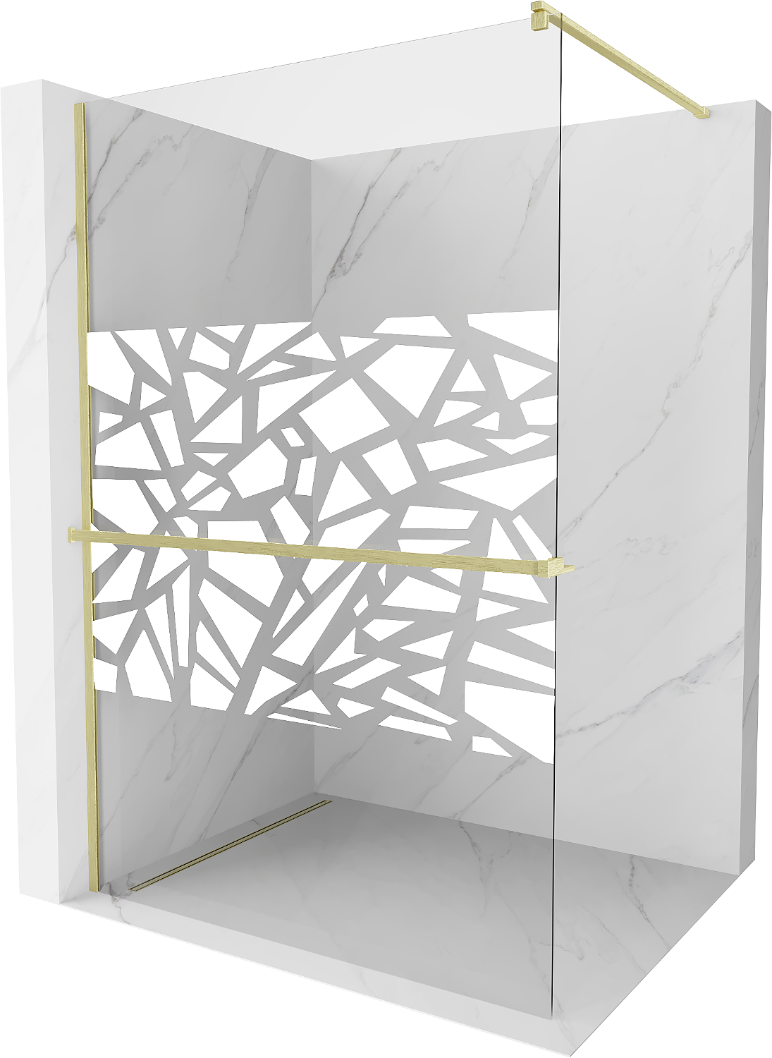 Mexen Kioto+ ścianka prysznicowa z półką Walk-in 130 x 200 cm, biały wzór, złota szczotkowana - 800-130-121-55-85