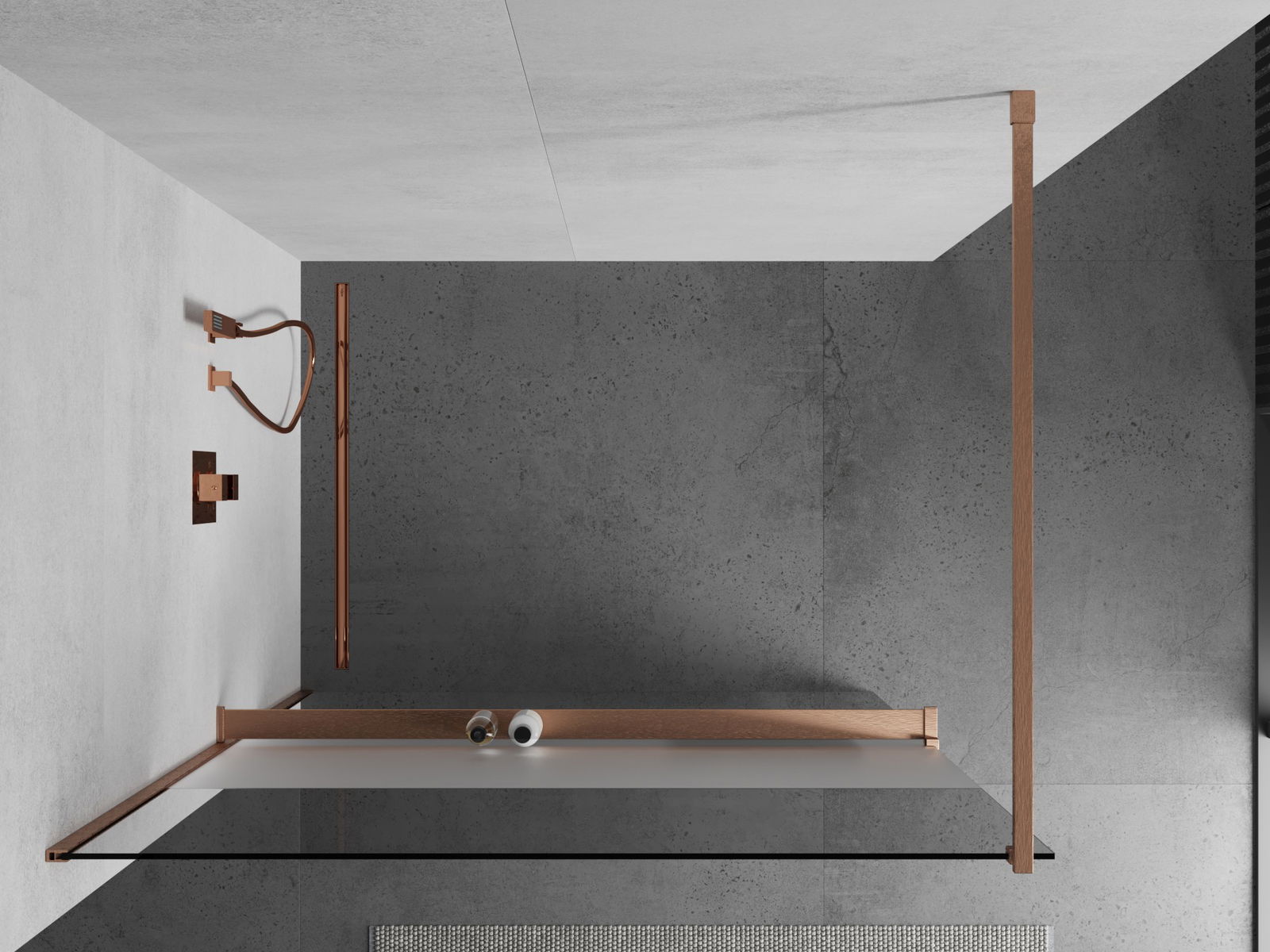 Mexen Kioto+ ścianka prysznicowa z półką Walk-in 100 x 200 cm, transparent/szron, miedź szczotkowana - 800-100-121-65-35