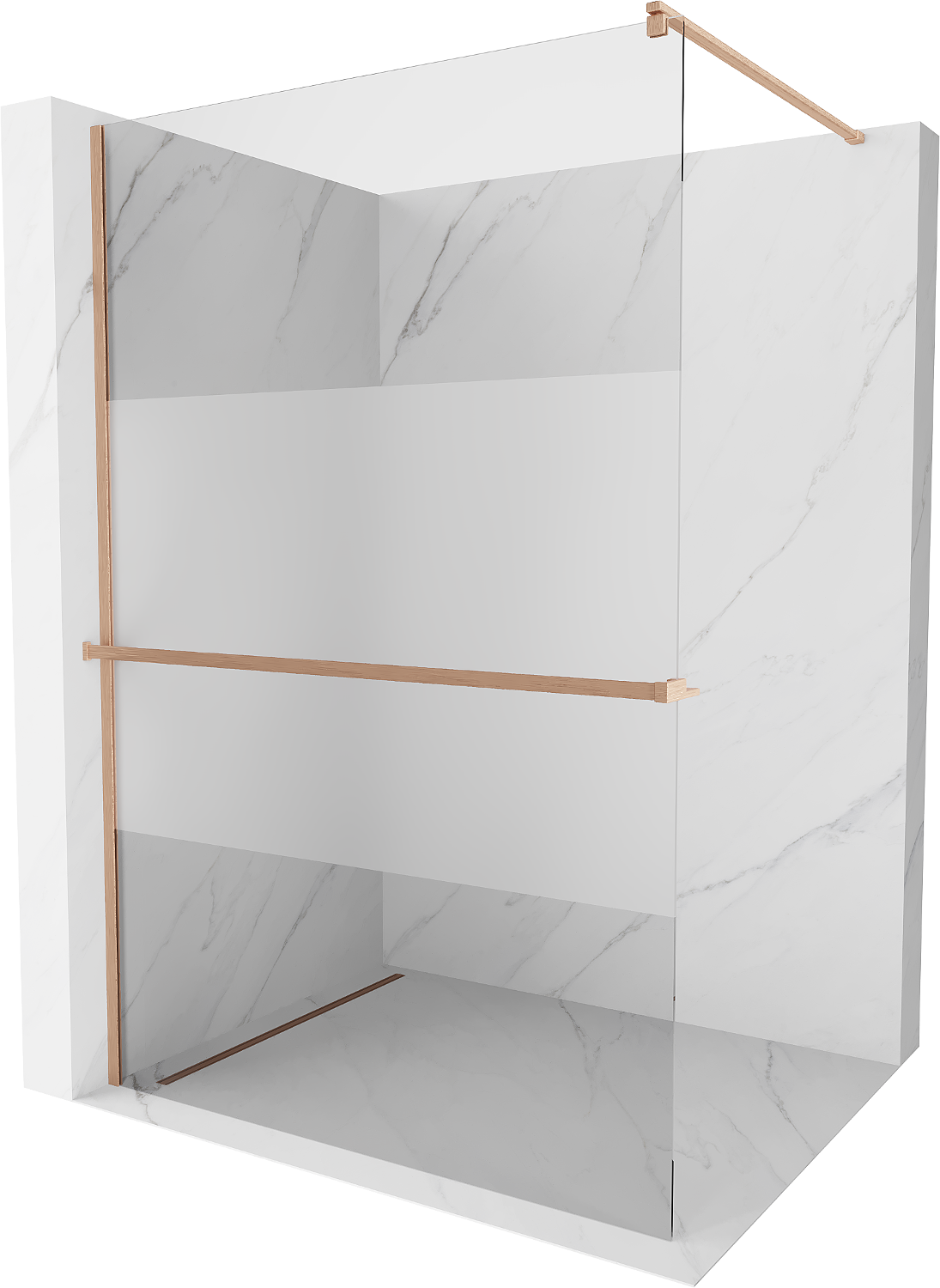 Mexen Kioto+ ścianka prysznicowa z półką Walk-in 130 x 200 cm, transparent/szron, miedź szczotkowana - 800-130-121-65-35