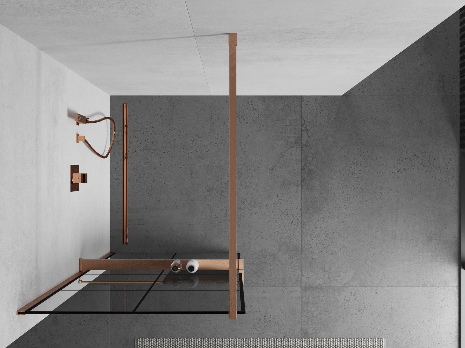 Mexen Kioto+ ścianka prysznicowa z półką Walk-in 90 x 200 cm, czarna kratka, miedź szczotkowana - 800-090-121-65-77