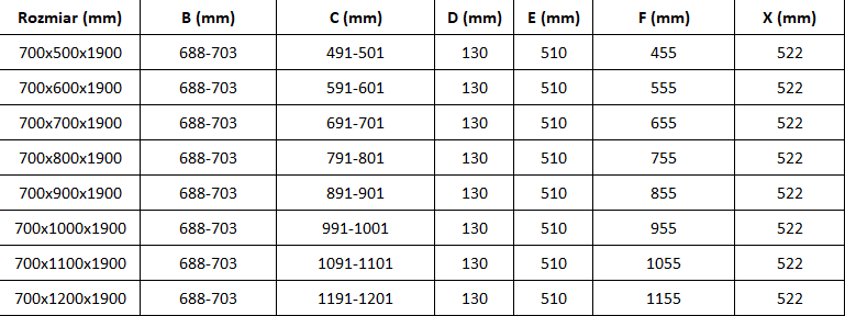 Rozmiar: 70x70 cm (drzwi 70 cm, ścianka 70 cm)