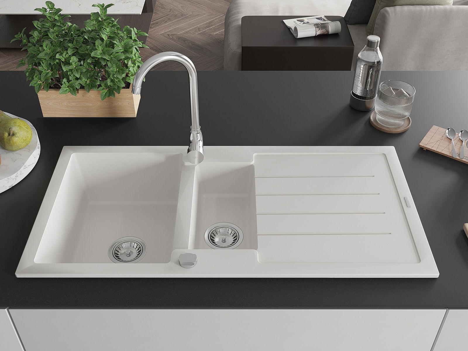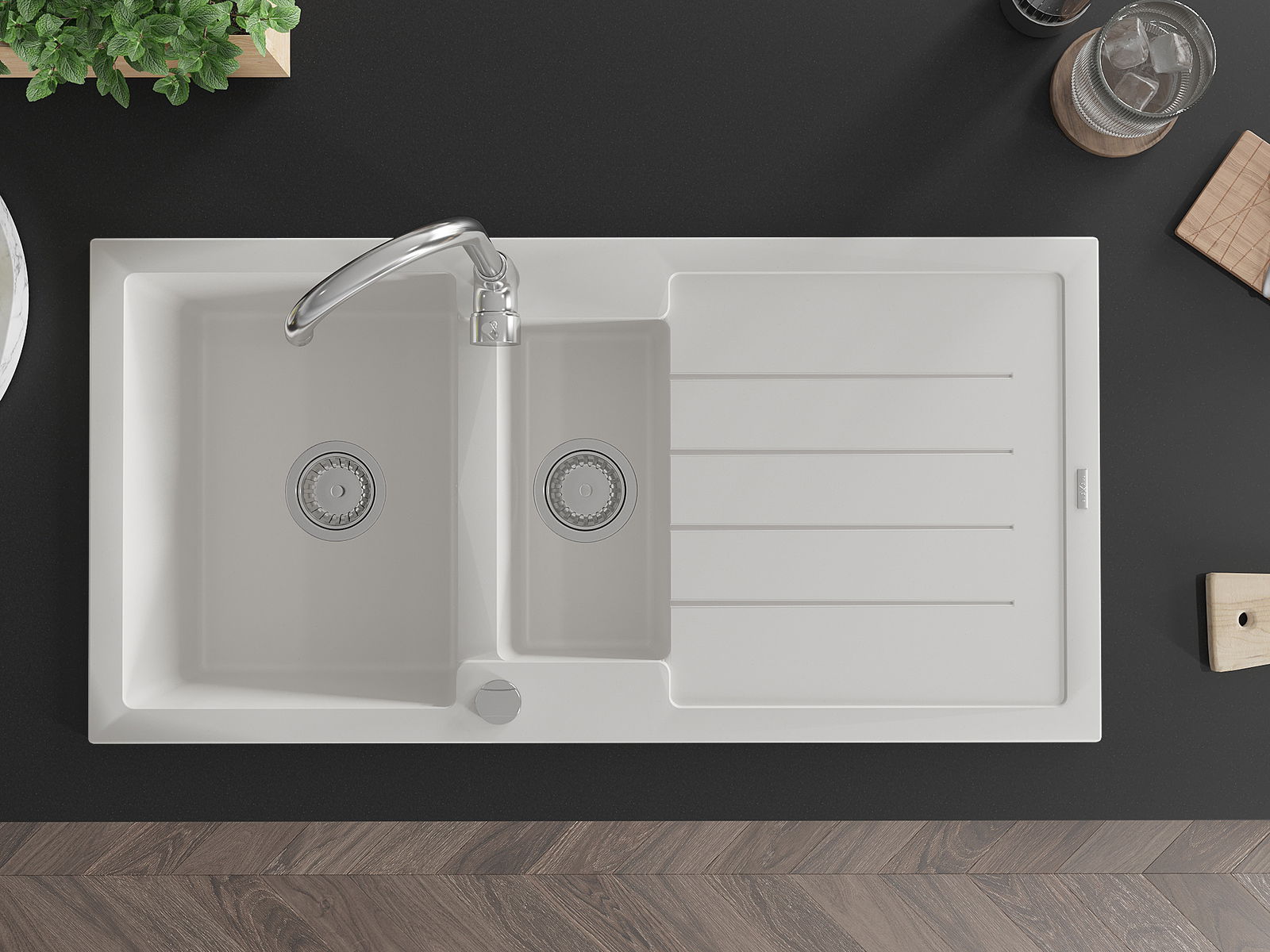 Mexen Andres zlewozmywak granitowy 1,5-komorowy z ociekaczem 1000 x 500 mm, biały, syfon chrom - 6515101510-20