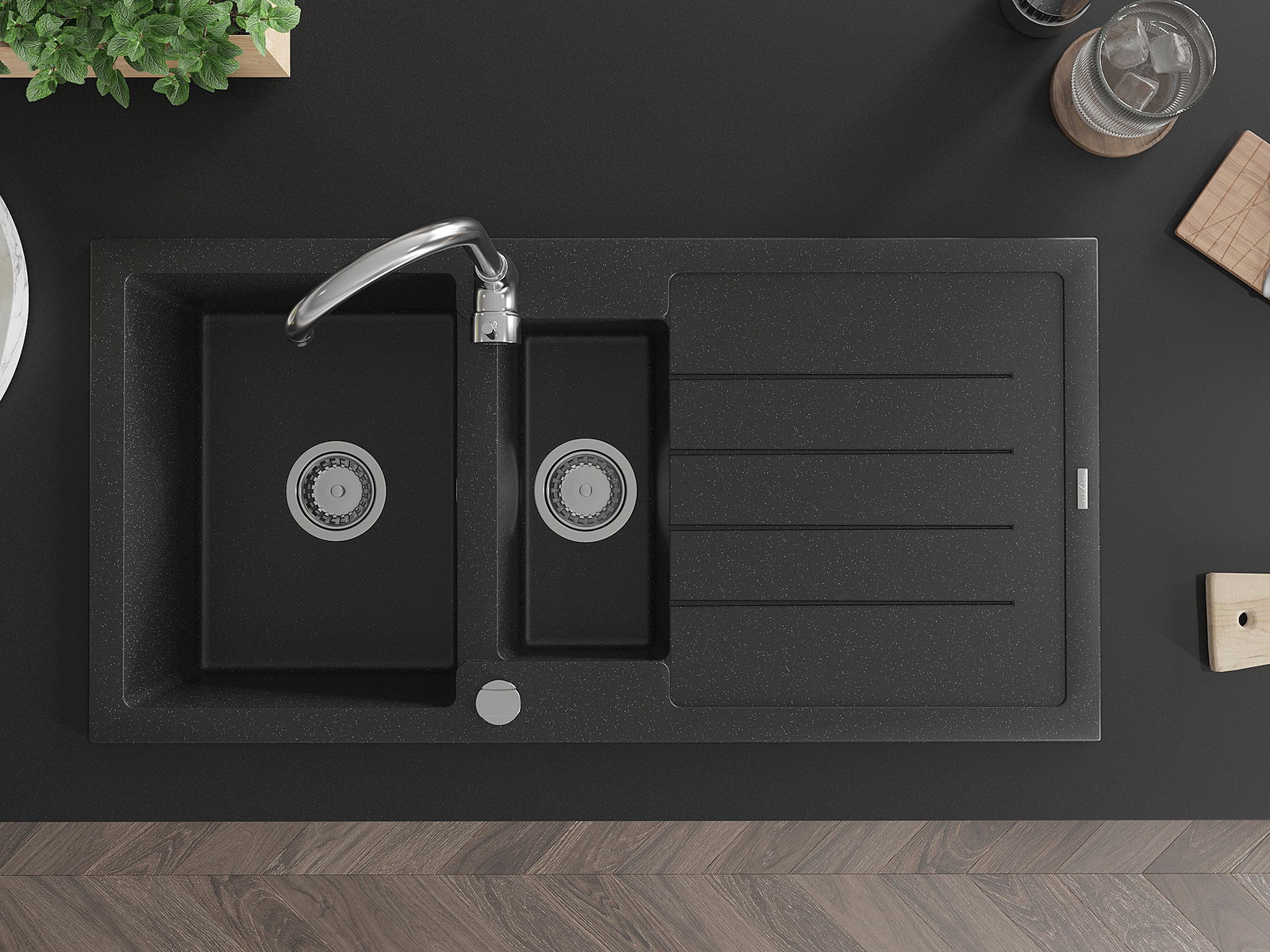 Mexen Andres zlewozmywak granitowy 1,5-komorowy z ociekaczem 1000 x 500 mm, czarny/srebrny metalik, syfon chrom - 6515101510-73