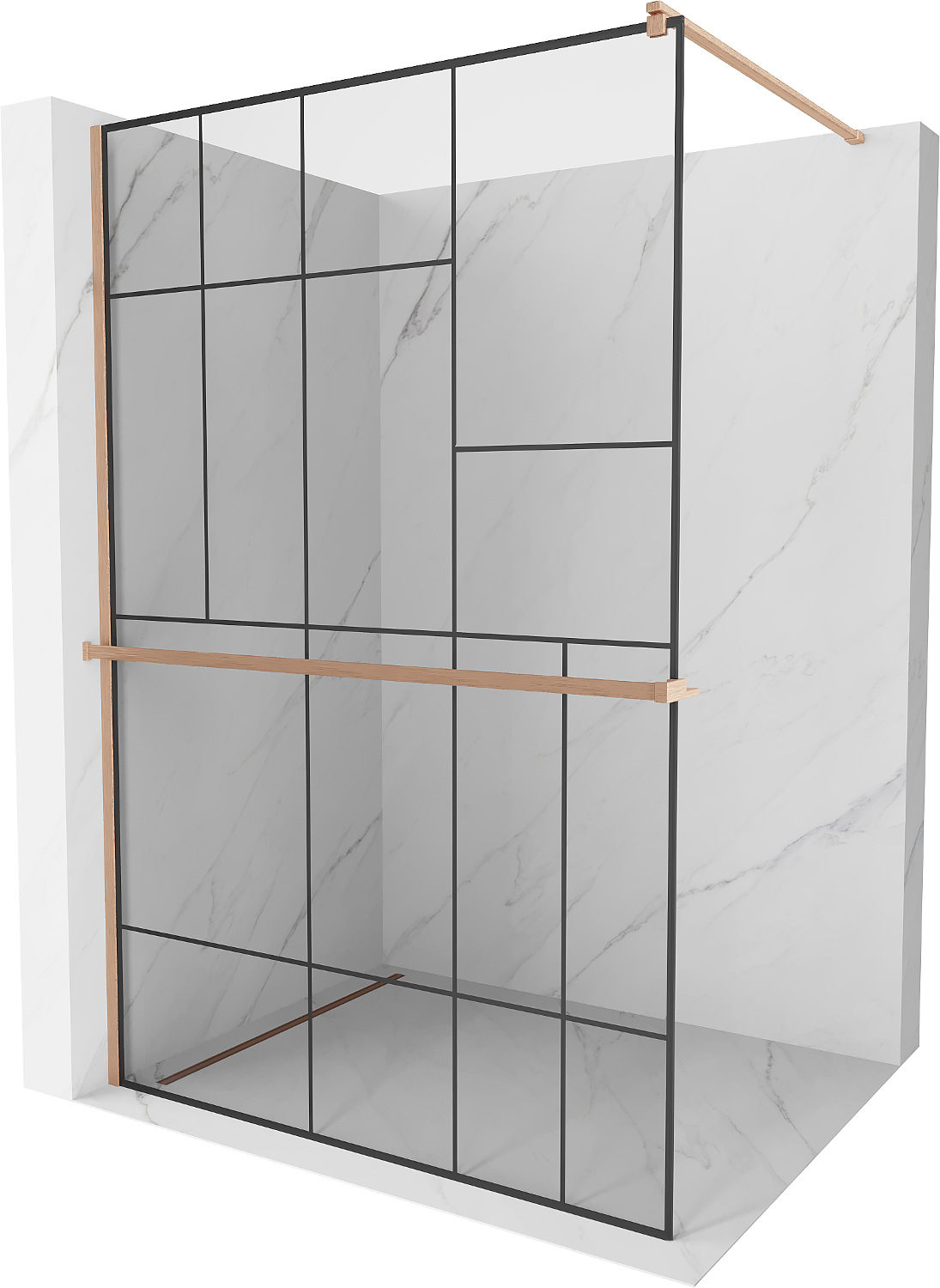 Mexen Kioto+ ścianka prysznicowa z półką Walk-in 70 x 200 cm, czarny wzór, miedź szczotkowana - 800-070-121-65-78