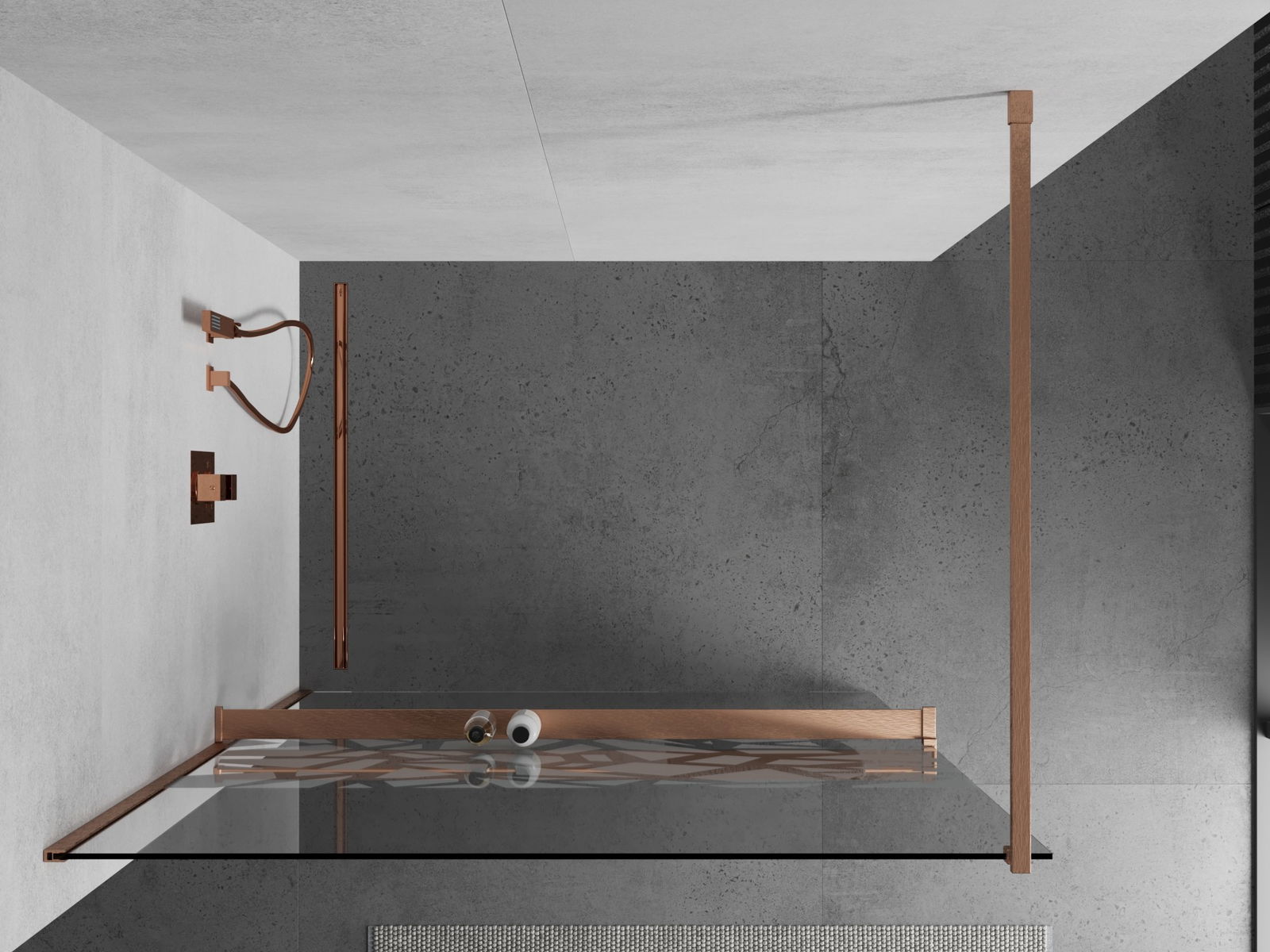 Mexen Kioto+ ścianka prysznicowa z półką Walk-in 70 x 200 cm, biały wzór, miedź szczotkowana - 800-070-121-65-85