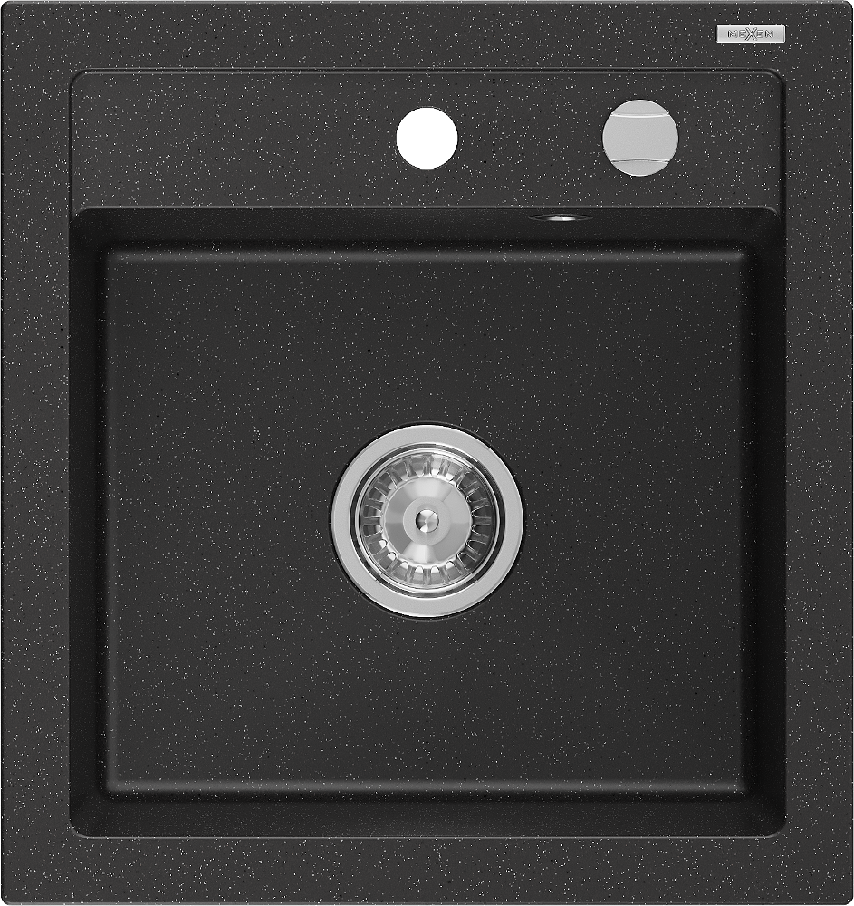 Mexen Vito zlewozmywak granitowy 1-komorowy 520 x 490 mm, czarny/srebrny metalik, syfon chrom - 6503521000-73