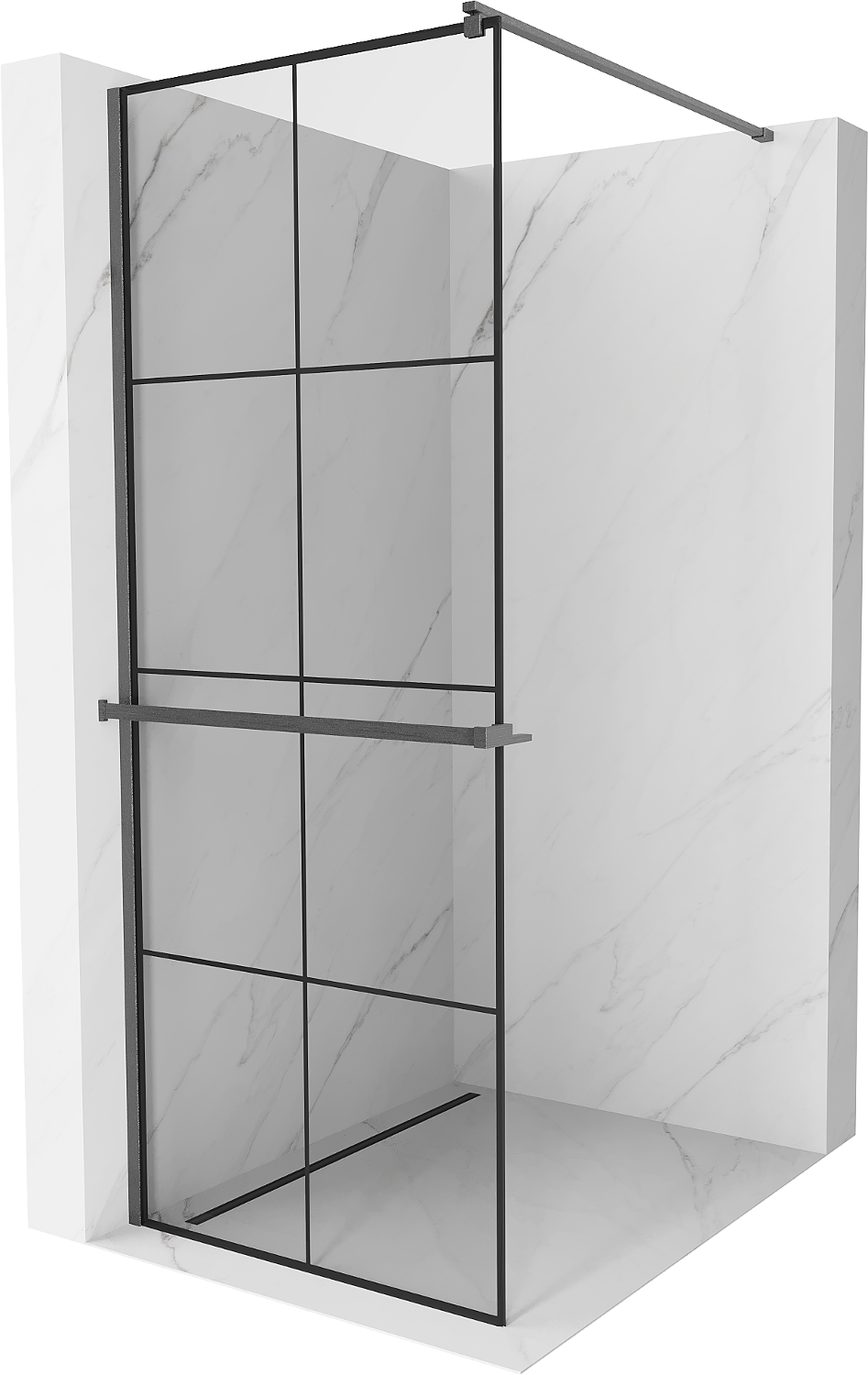 Mexen Kioto+ ścianka prysznicowa z półką Walk-in 90 x 200 cm, czarna kratka, gun gray szczotkowany - 800-090-121-66-77