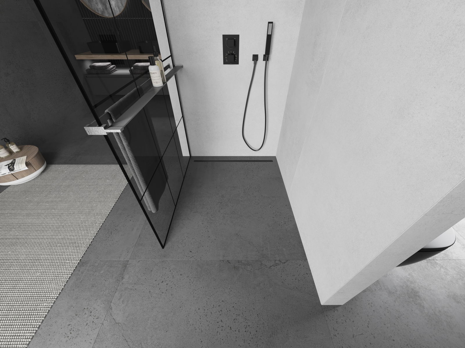 Mexen Kioto+ ścianka prysznicowa z półką Walk-in 120 x 200 cm, czarna kratka, gun gray szczotkowany - 800-120-121-66-77