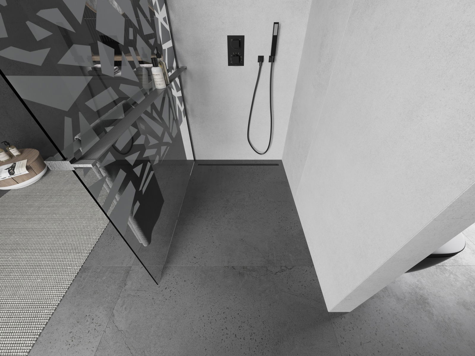 Mexen Kioto+ ścianka prysznicowa z półką Walk-in 110 x 200 cm, biały wzór, gun gray szczotkowany - 800-110-121-66-85