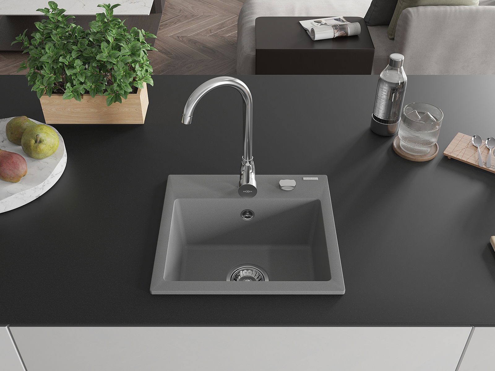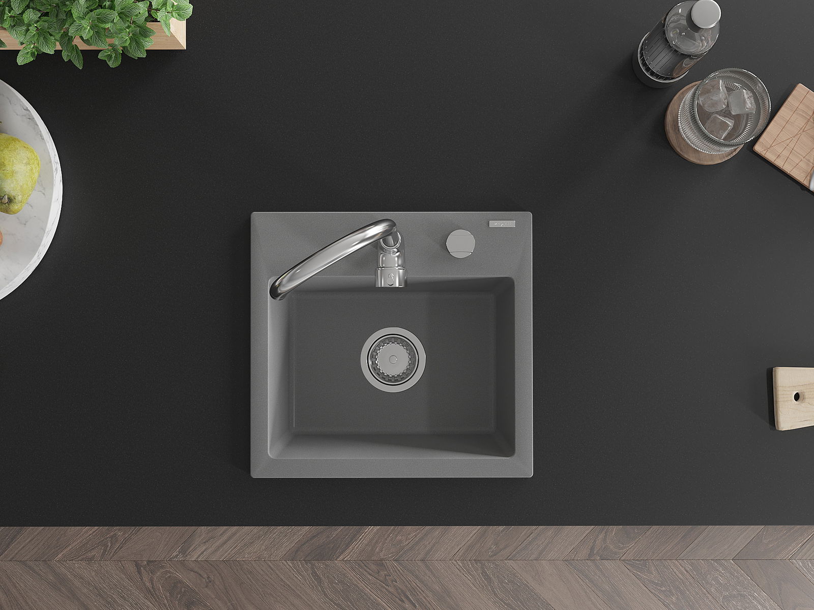 Mexen Milo zlewozmywak granitowy 1-komorowy 435 x 410 mm, szary, syfon chrom - 6505441000-71