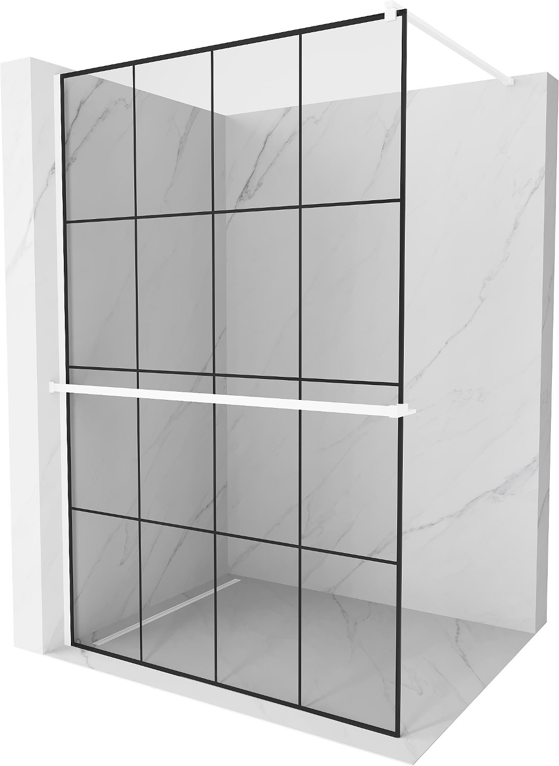 Mexen Kioto+ ścianka prysznicowa z półką Walk-in 140 x 200 cm, czarna kratka, biała - 800-140-121-20-77