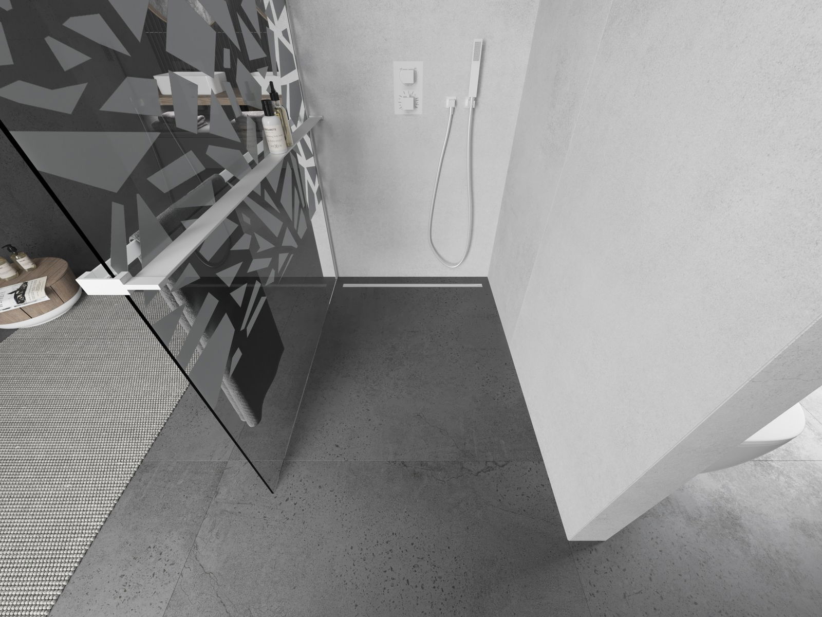 Mexen Kioto+ ścianka prysznicowa z półką Walk-in 130 x 200 cm, biały wzór, biała - 800-130-121-20-85