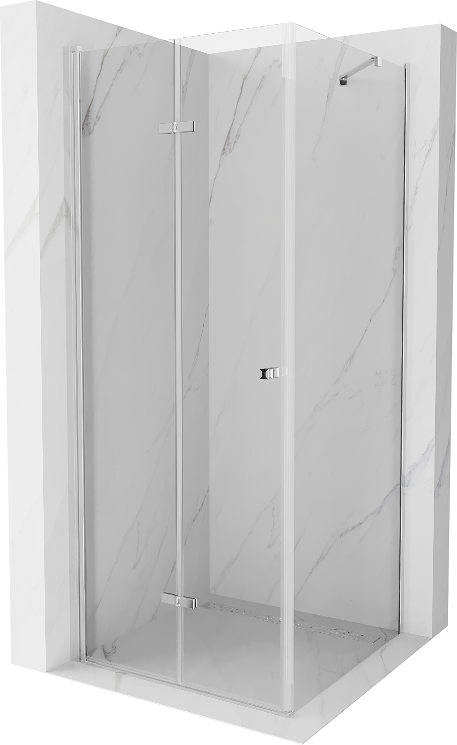 Możliwość składania drzwi, zarówno do zewnątrz, jak i do wewnątrz, pozwala uzyskać więcej przestrzeni podczas niekorzystania z prysznica. Jest to idealne rozwiązanie do mniejszych łazienek, maksymalnie wykorzystujące dostępną powierzchnię.