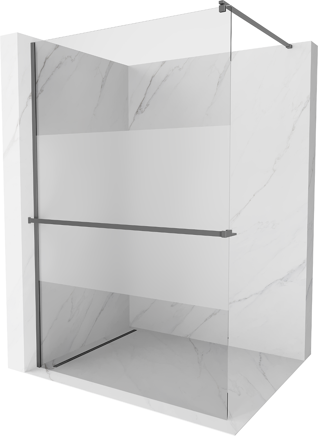 Mexen Kioto+ ścianka prysznicowa z półką Walk-in 70 x 200 cm, transparent/szron, gun metal - 800-070-121-95-35