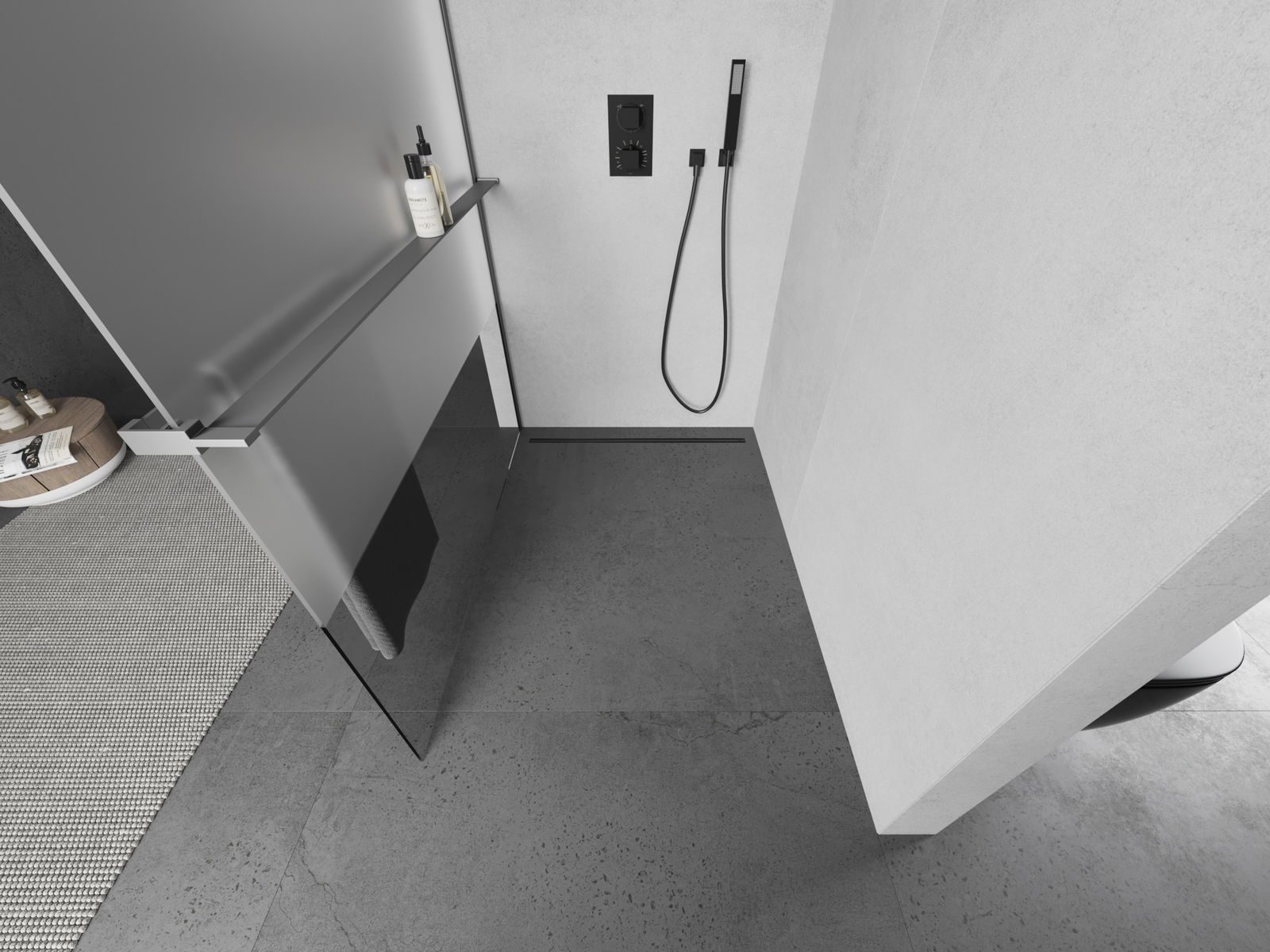 Mexen Kioto+ ścianka prysznicowa z półką Walk-in 80 x 200 cm, transparent/szron, gun metal - 800-080-121-95-35
