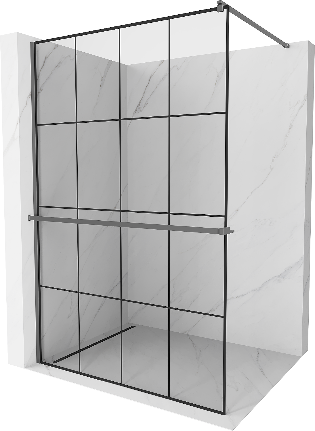 Mexen Kioto+ ścianka prysznicowa z półką Walk-in 140 x 200 cm, czarna kratka, gun metal - 800-140-121-95-77