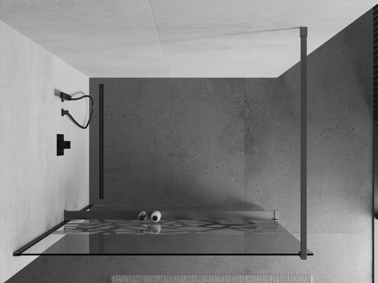 Mexen Kioto+ ścianka prysznicowa z półką Walk-in 80 x 200 cm, biały wzór, gun metal - 800-080-121-95-85