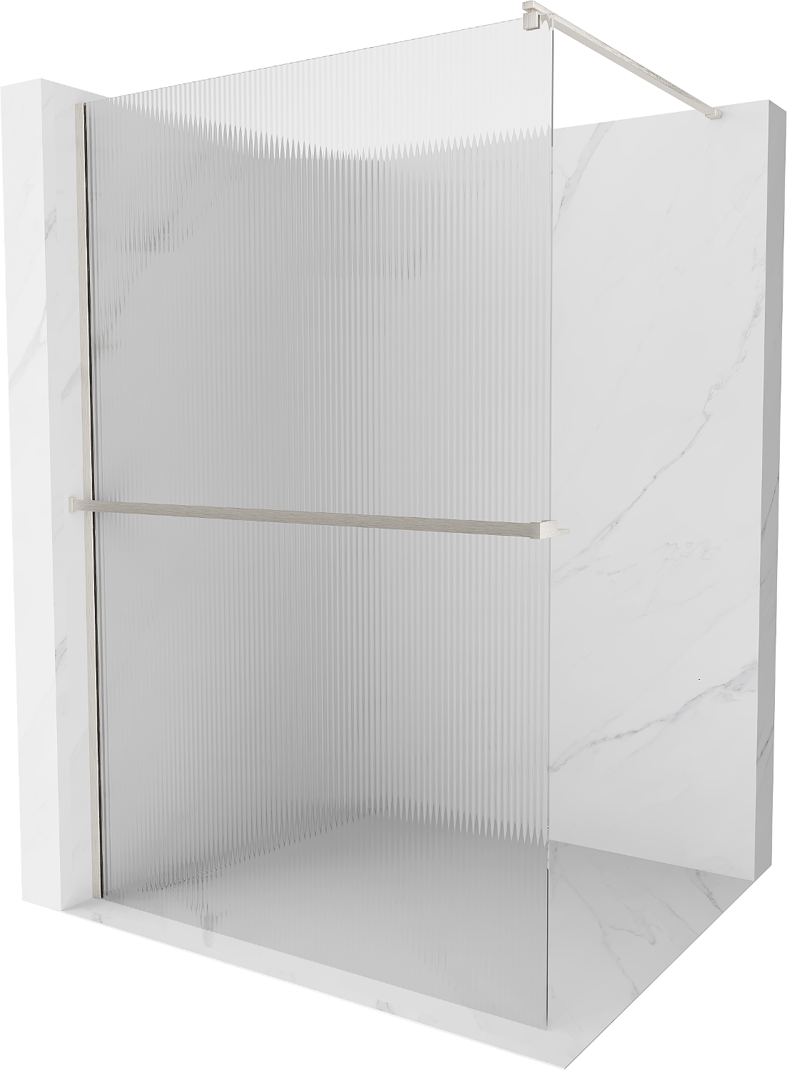 Mexen Kioto+ ścianka prysznicowa z półką Walk-in 100 x 200 cm, prążki, nikiel szczotkowany - 800-100-121-97-09