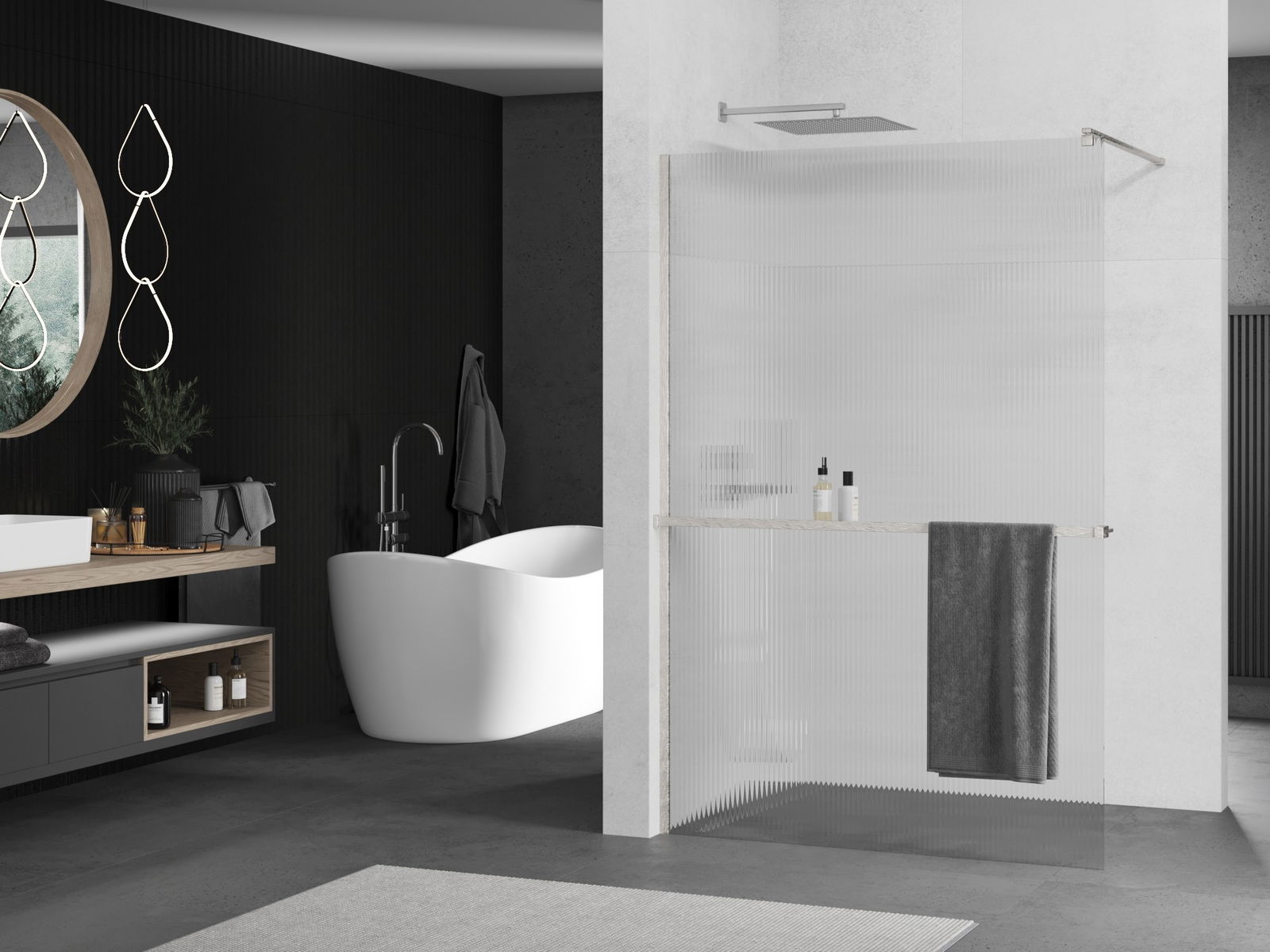 Ścianka prysznicowa walk-in to idealne rozwiązanie dla osób niepełnosprawnych. Kabina otwarta zapewnia łatwy dostęp, eliminując potrzebę pokonywania progów i drzwi. Korzystanie z prysznica jest komfortowe i przyjazne dla każdego.