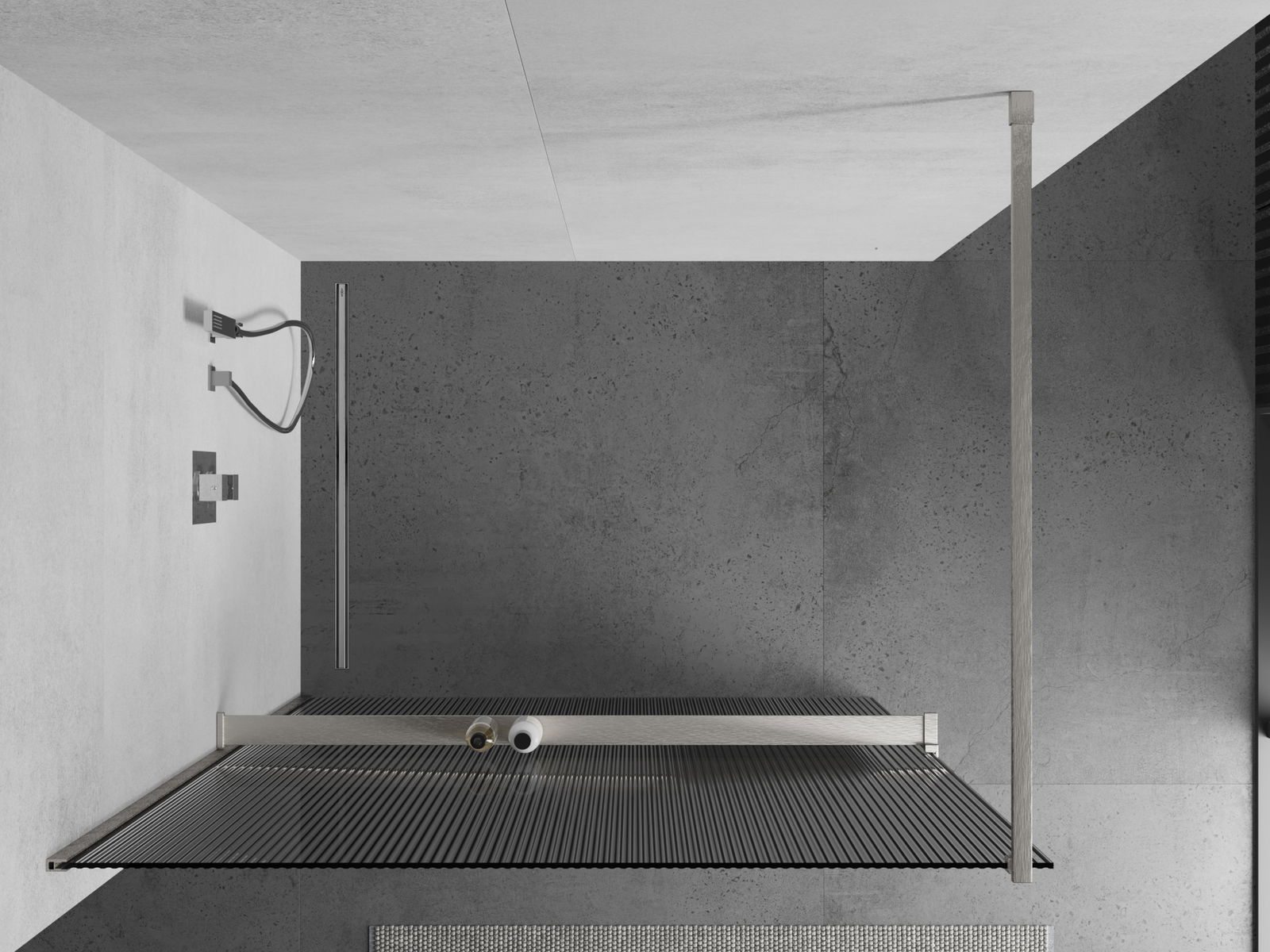 Mexen Kioto+ ścianka prysznicowa z półką Walk-in 130 x 200 cm, prążki, nikiel szczotkowany - 800-130-121-97-09