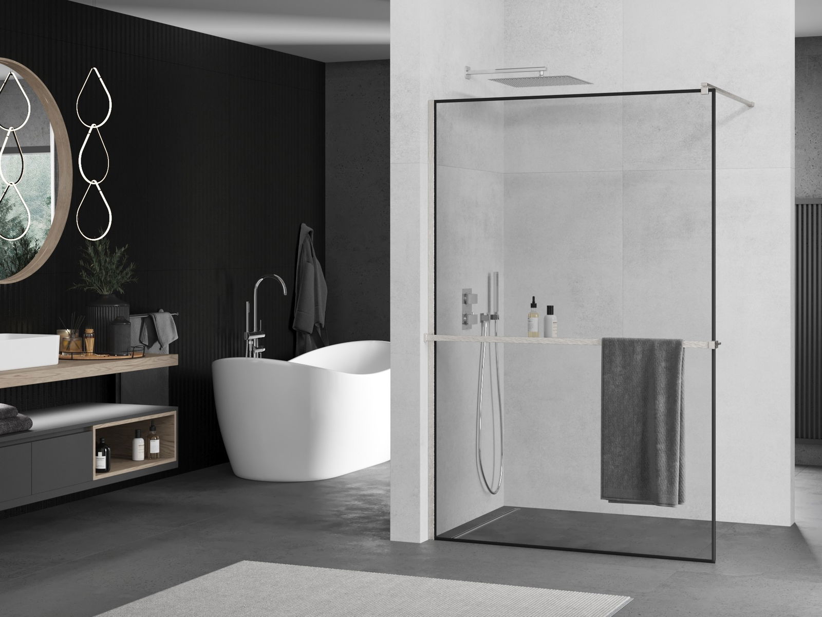 Ścianka prysznicowa walk-in to idealne rozwiązanie dla osób niepełnosprawnych. Kabina otwarta zapewnia łatwy dostęp, eliminując potrzebę pokonywania progów i drzwi. Korzystanie z prysznica jest komfortowe i przyjazne dla każdego.