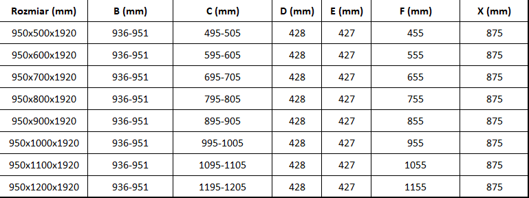 Rozmiar: 95x120 cm (drzwi 95 cm, ścianka 120 cm)