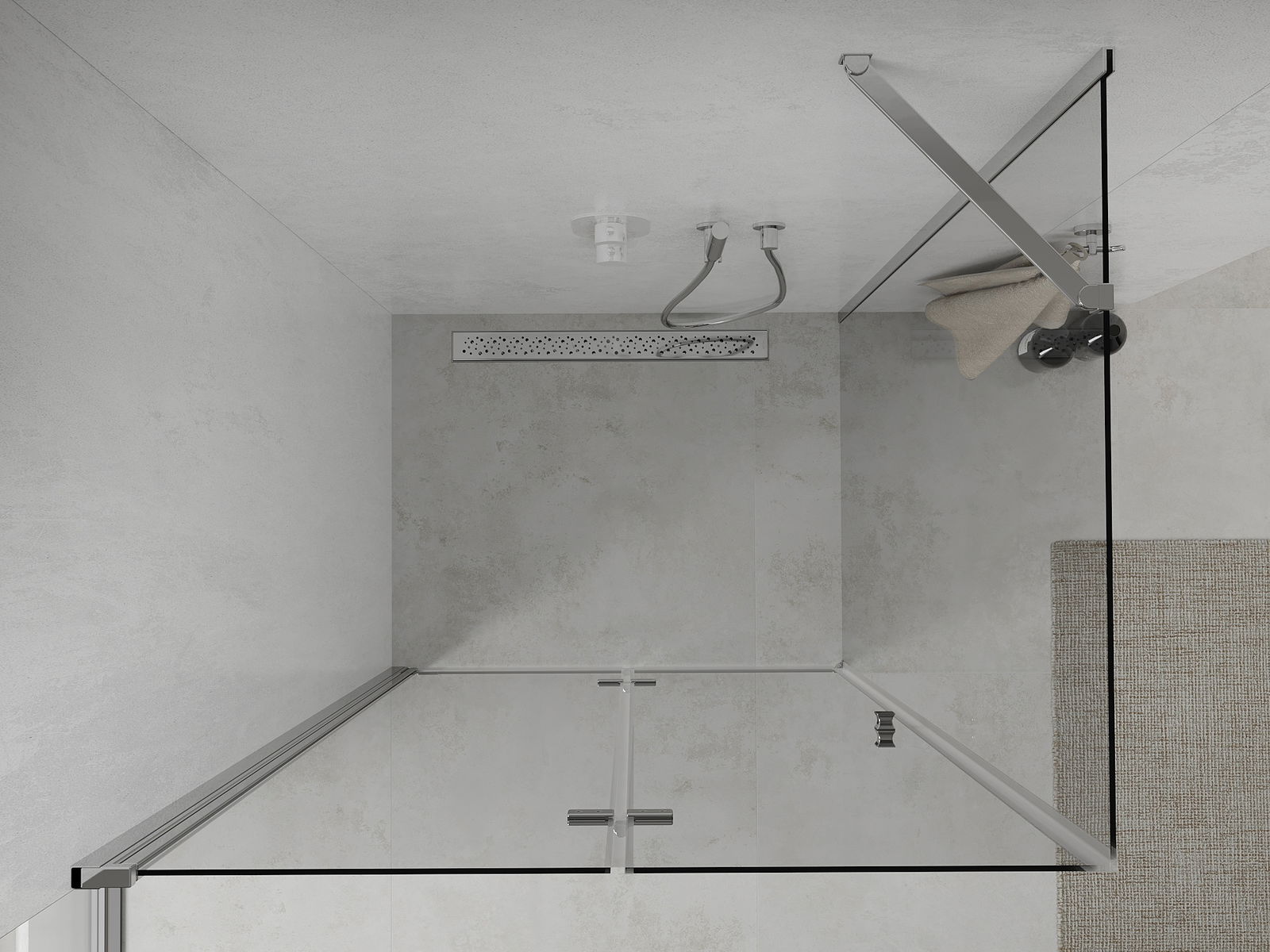 Możliwość składania drzwi, zarówno do zewnątrz, jak i do wewnątrz, pozwala uzyskać więcej przestrzeni podczas niekorzystania z prysznica. Jest to idealne rozwiązanie do mniejszych łazienek, maksymalnie wykorzystujące dostępną powierzchnię.