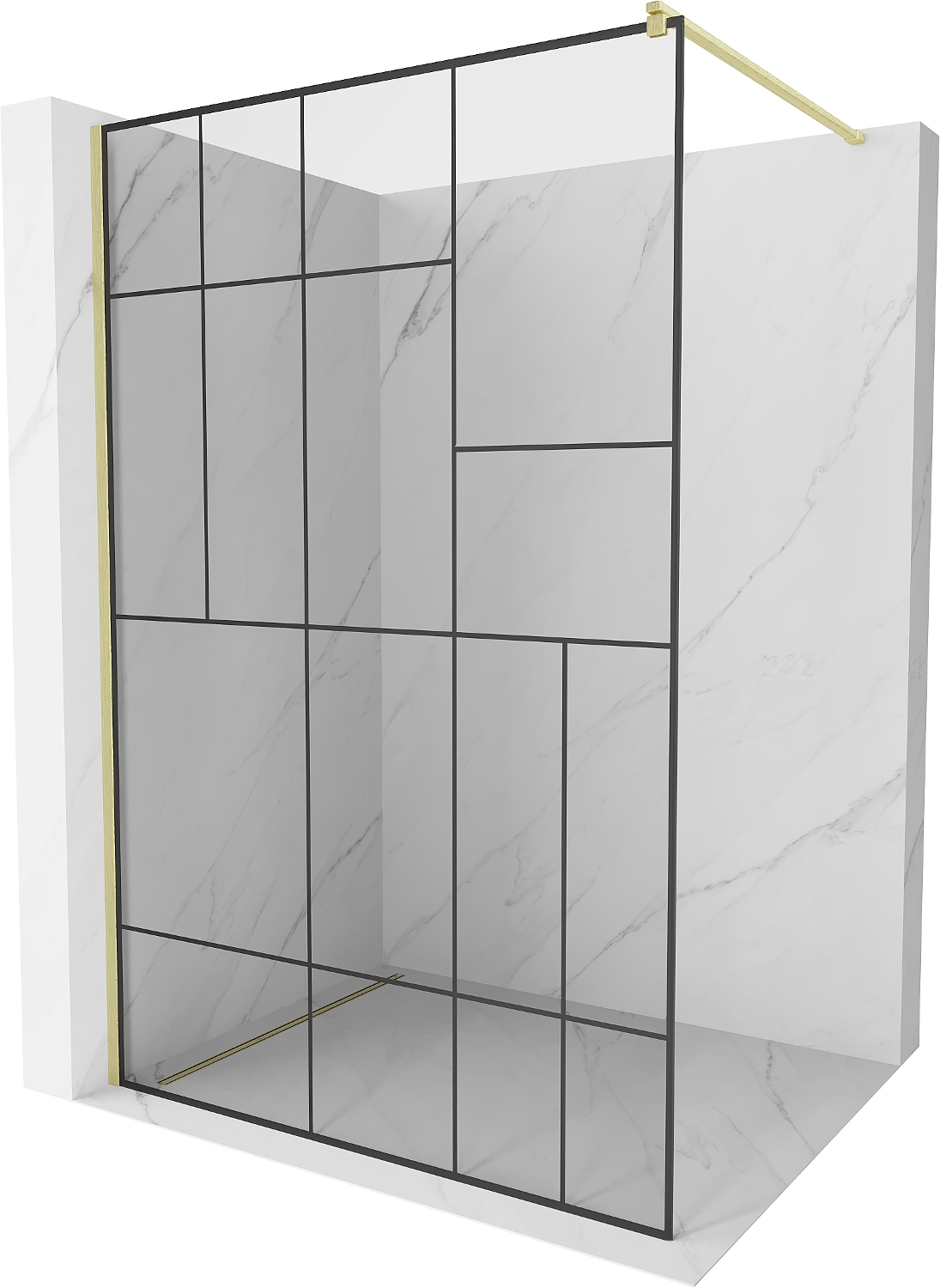 Mexen Kioto ścianka prysznicowa Walk-in 70 x 200 cm, czarny wzór 8 mm, złota szczotkowana - 800-070-101-55-78