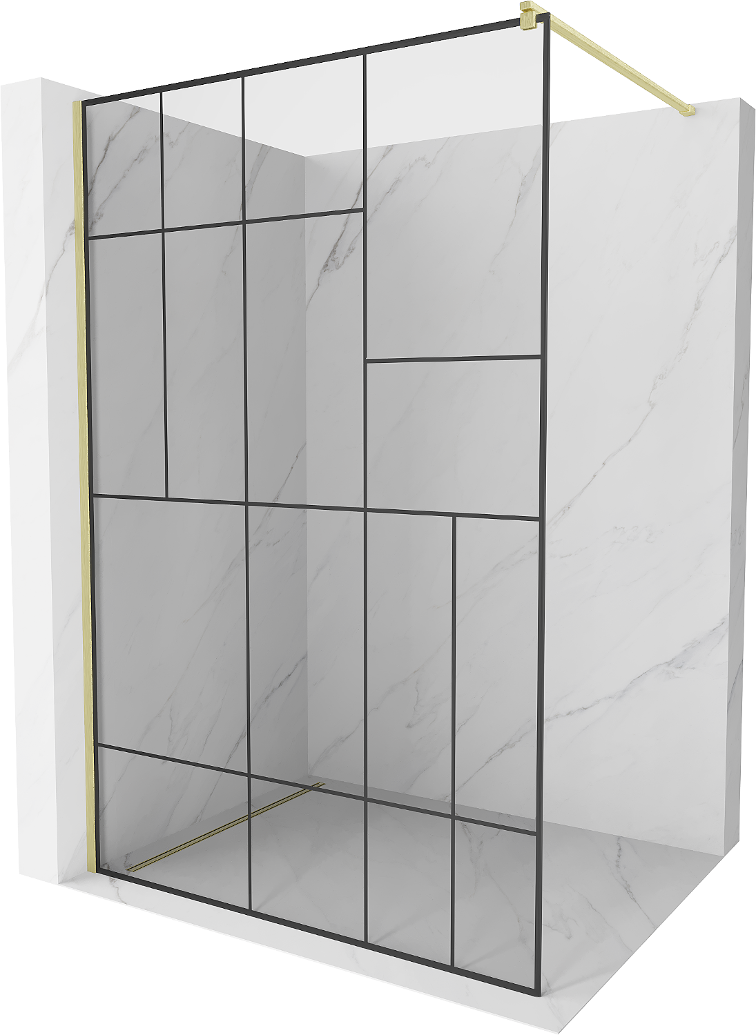 Mexen Kioto ścianka prysznicowa Walk-in 120 x 200 cm, czarny wzór 8 mm, złota szczotkowana - 800-120-101-55-78