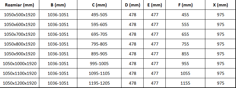 Rozmiar: 105x80 cm (drzwi 105 cm, ścianka 80 cm)