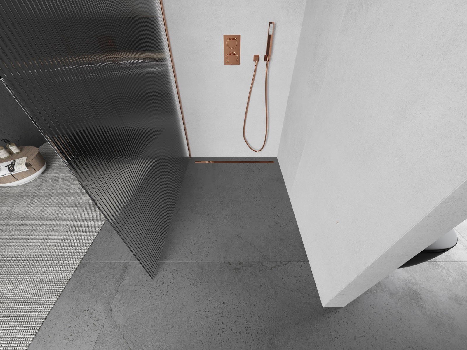 Mexen Kioto ścianka prysznicowa Walk-in 110 x 200 cm, prążki 8 mm, miedź szczotkowana - 800-110-101-65-09