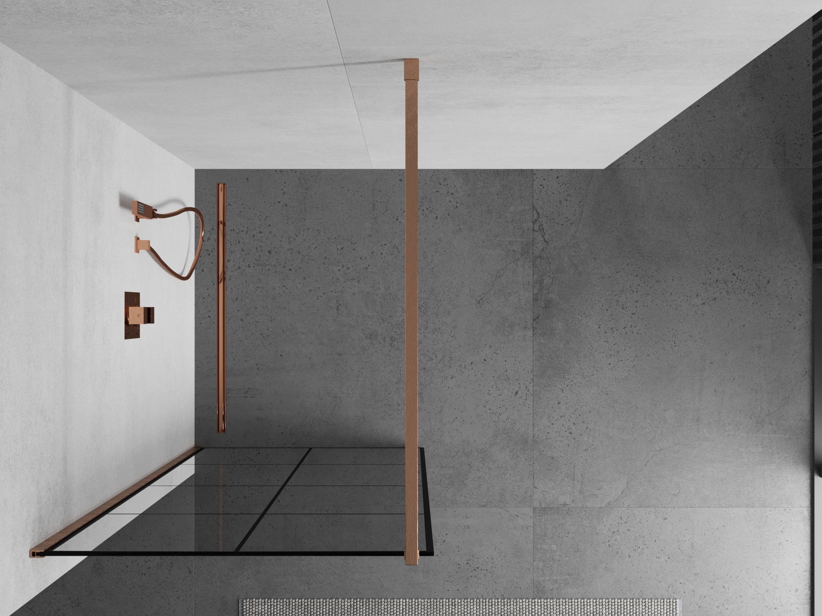 Mexen Kioto ścianka prysznicowa Walk-in 70 x 200 cm, czarna kratka 8 mm, miedź szczotkowana - 800-070-101-65-77