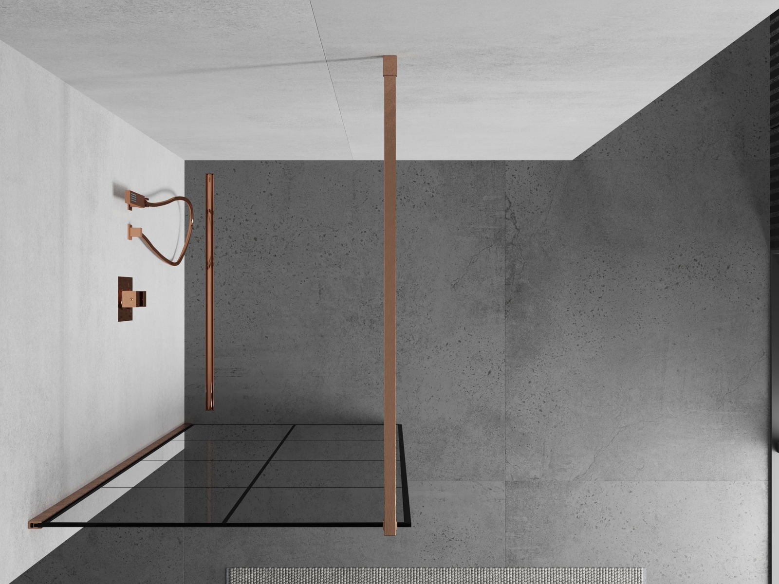 Mexen Kioto ścianka prysznicowa Walk-in 80 x 200 cm, czarna kratka 8 mm, miedź szczotkowana - 800-080-101-65-77
