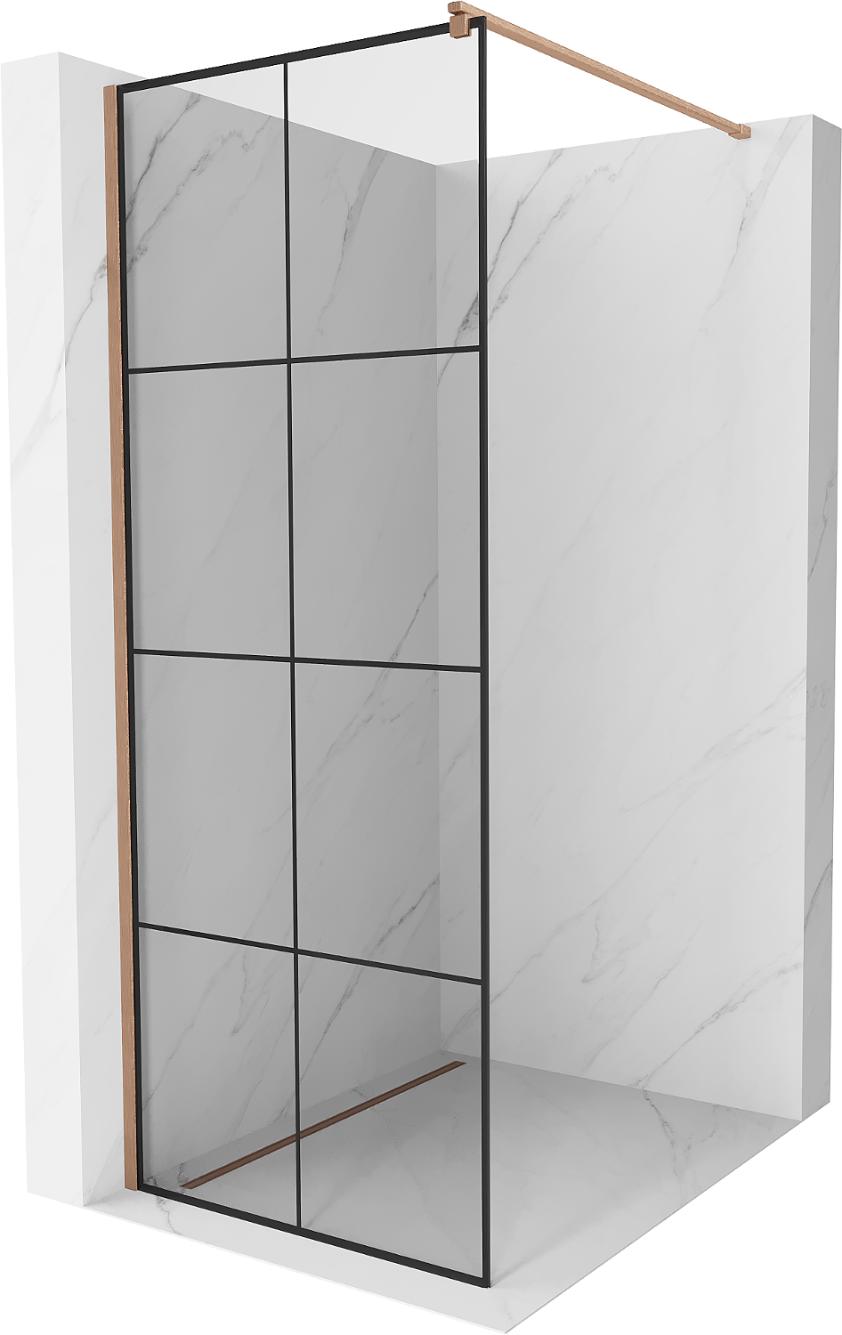 Mexen Kioto ścianka prysznicowa Walk-in 90 x 200 cm, czarna kratka 8 mm, miedź szczotkowana - 800-090-101-65-77