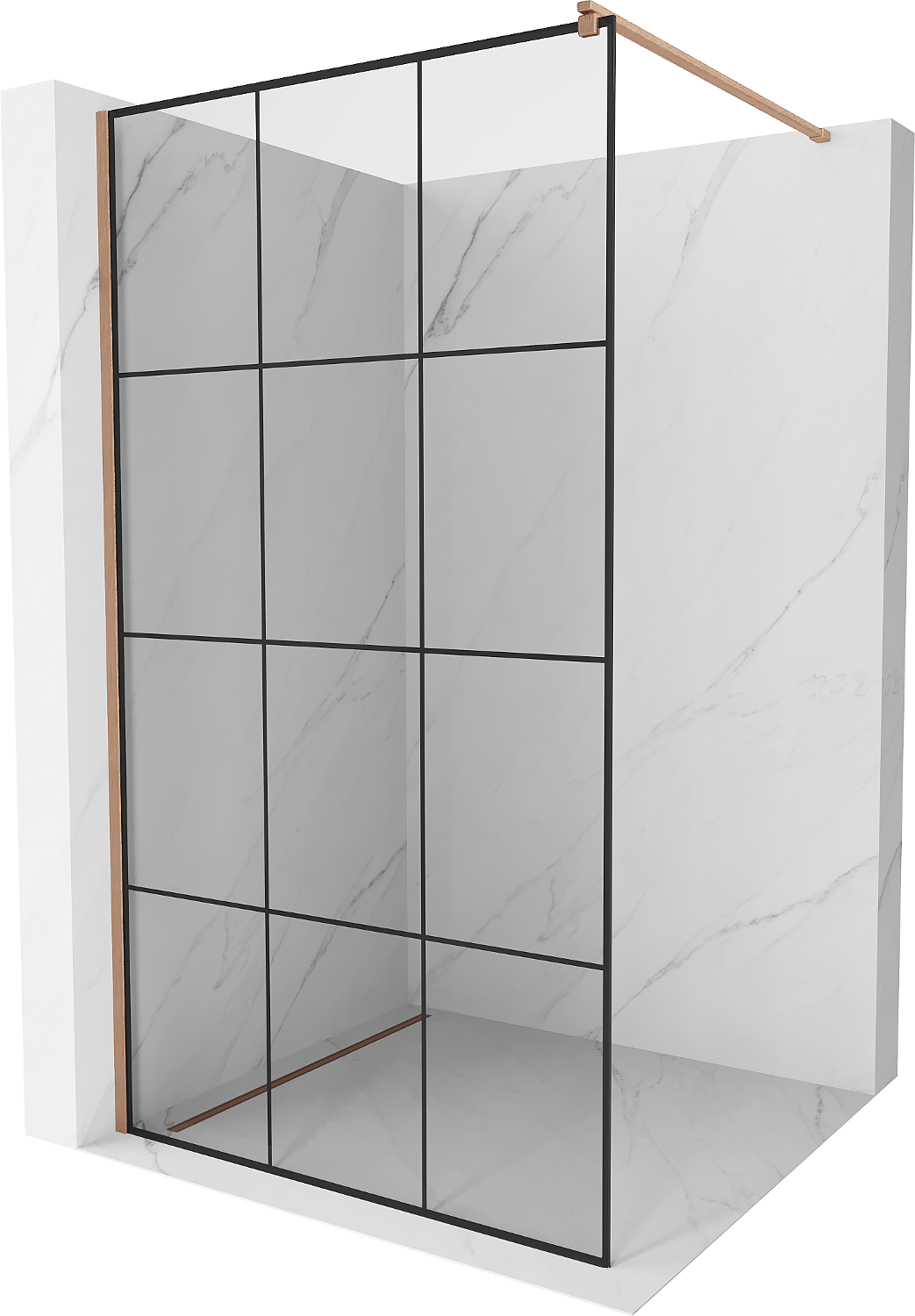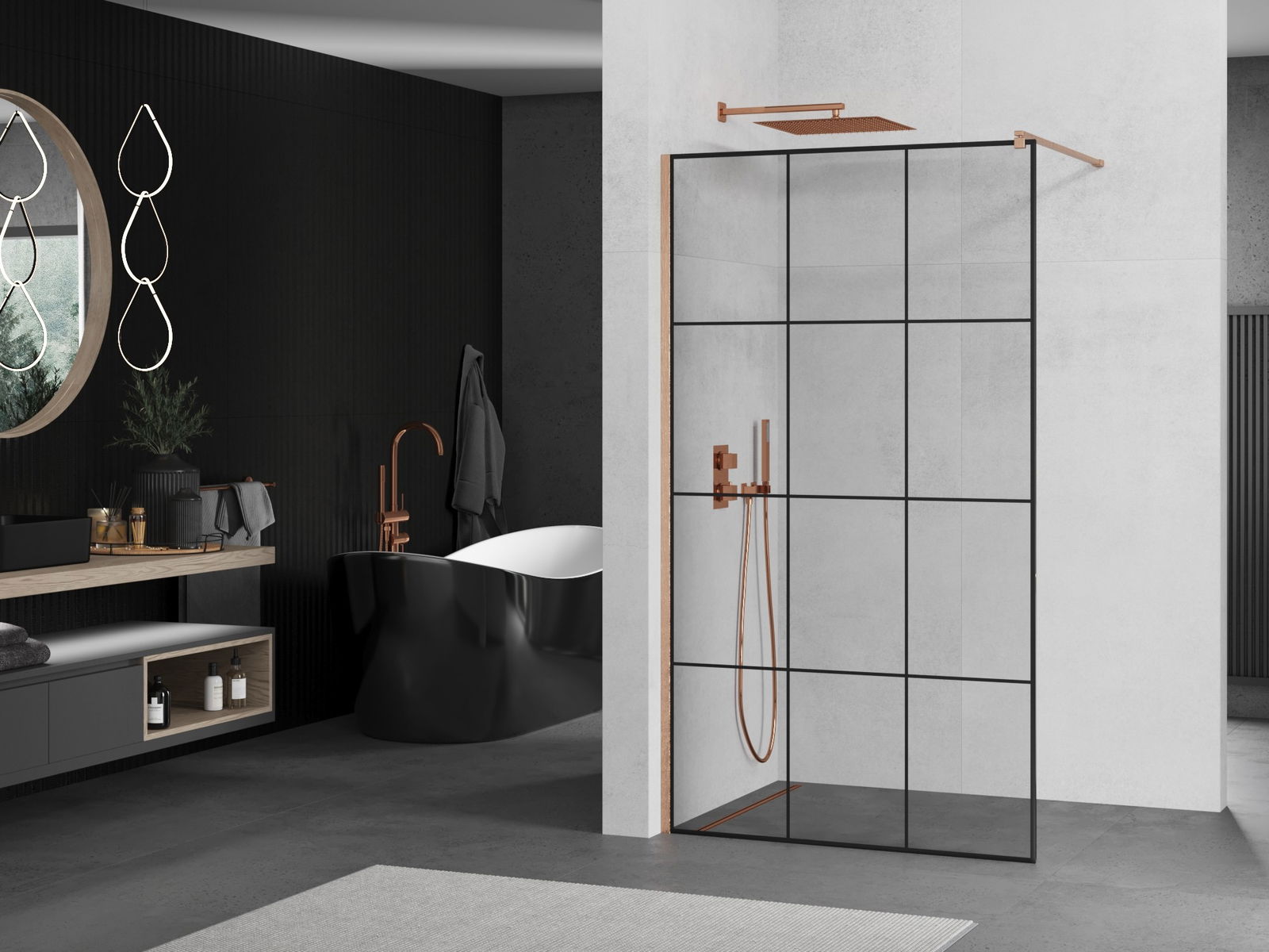 Mexen Kioto ścianka prysznicowa Walk-in 100 x 200 cm, czarna kratka 8 mm, miedź szczotkowana - 800-100-101-65-77