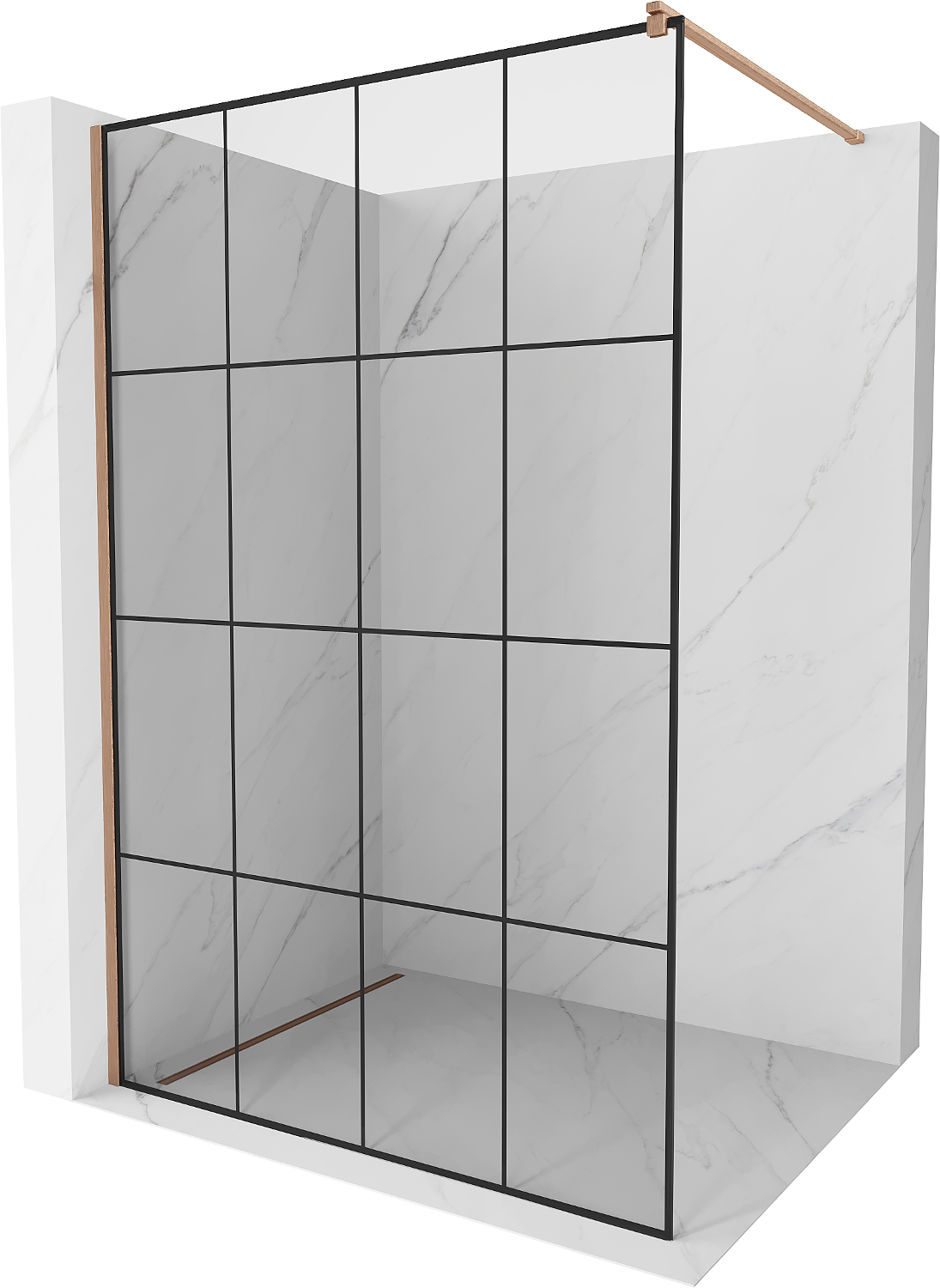 Mexen Kioto ścianka prysznicowa Walk-in 140 x 200 cm, czarna kratka 8 mm, miedź szczotkowana - 800-140-101-65-77