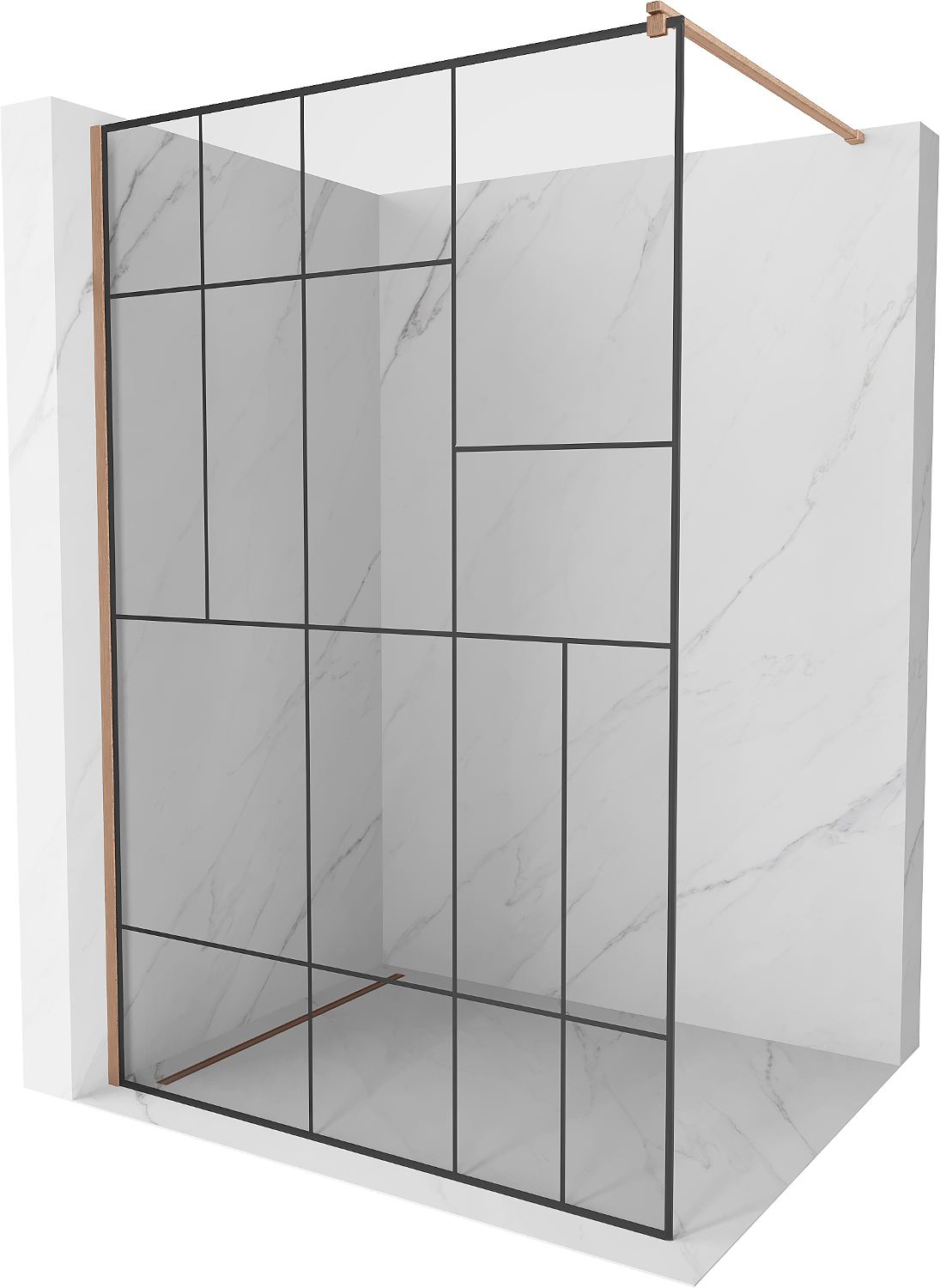Mexen Kioto ścianka prysznicowa Walk-in 90 x 200 cm, czarny wzór 8 mm, miedź szczotkowana - 800-090-101-65-78