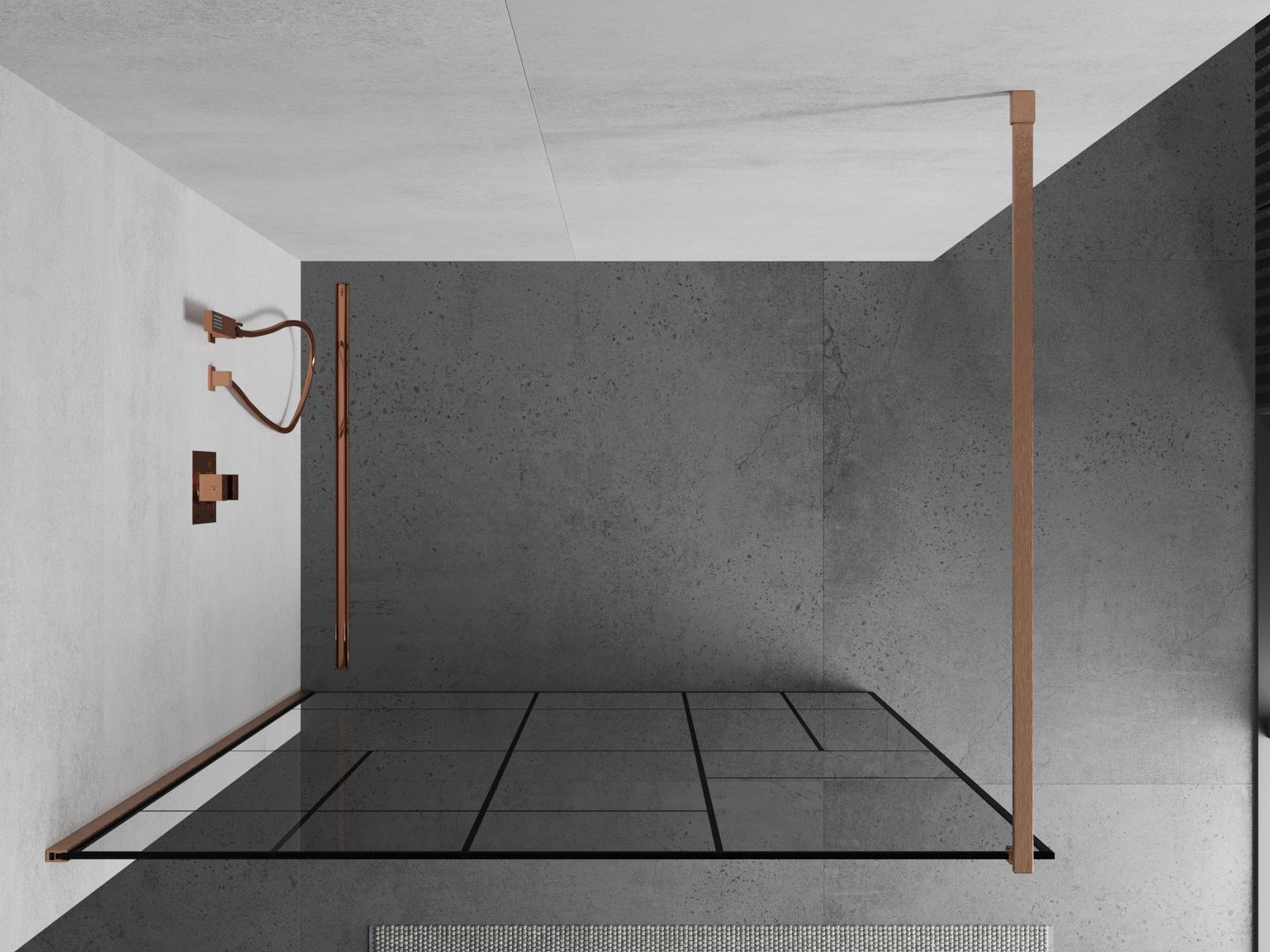 Mexen Kioto ścianka prysznicowa Walk-in 140 x 200 cm, czarny wzór 8 mm, miedź szczotkowana - 800-140-101-65-78